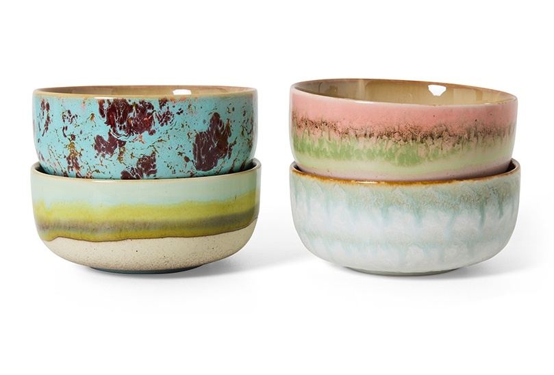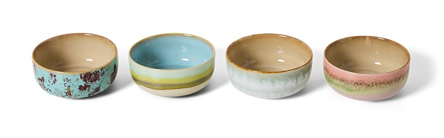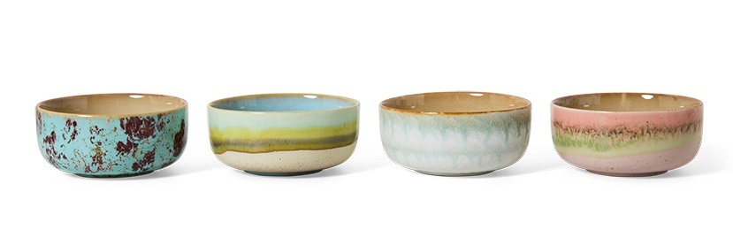 HKLiving 70s ceramics dessert bowls impression (set van 4), compacte keramieken kommetjes voor yoghurt, snacks en desserts. Lees meer