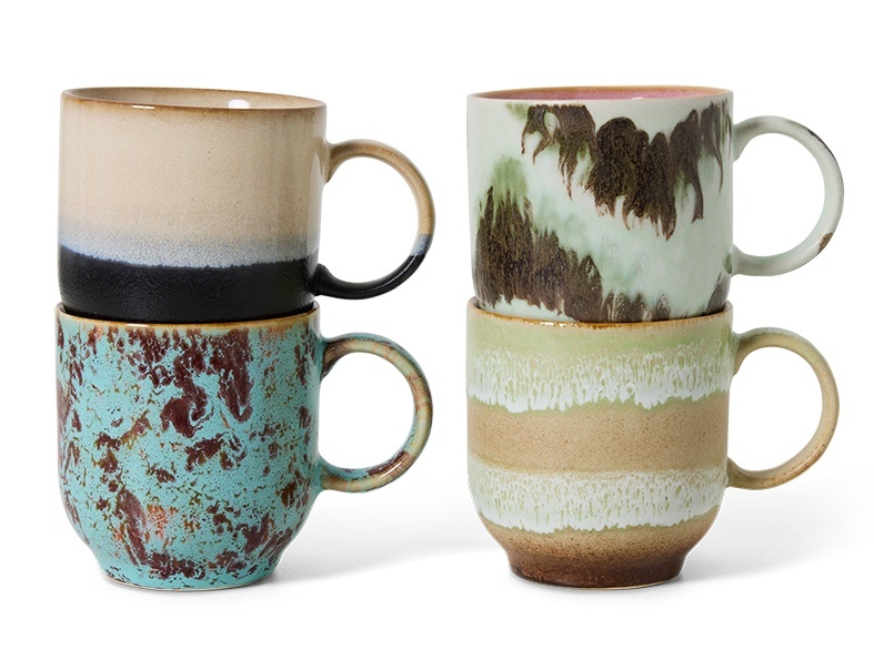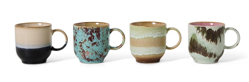 HKLiving 70s ceramics café mokken abstract (set van 4), keramiek met glanzende glazuurlaag, inhoud 250 ml. Lees meer