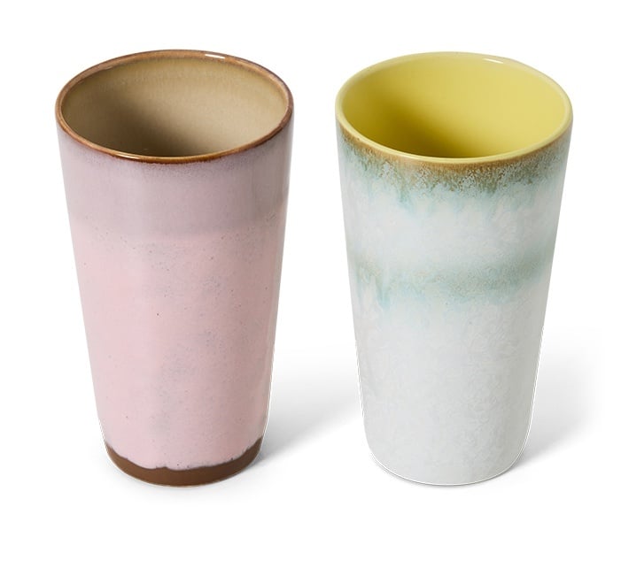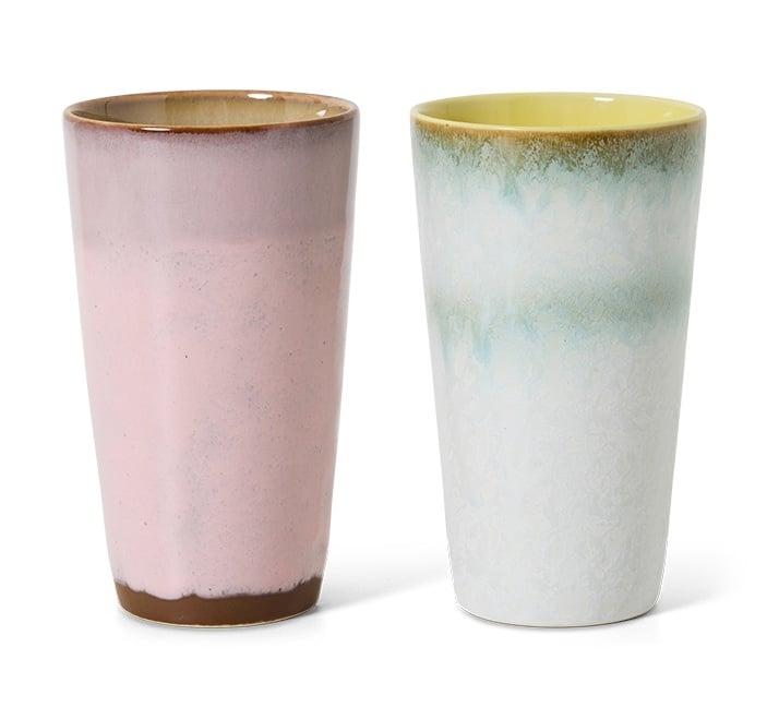 De HKLiving 70s ceramics latte mugs fresco zijn gemaakt voor koffieliefhebbers die graag wat extra ruimte hebben voor melk en schuim. Hoog, glad en stijlvol: deze keramieken mokken combineren retro glazuurkleuren met een praktische inhoud van 300 ml. Perfect voor een latte, maar ook ideaal voor thee of een royale cappuccino.