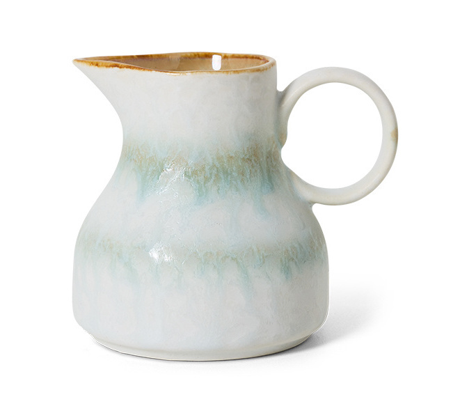 HKLiving 70s keramische melkkan petal, een handgemaakt steengoed kannetje met speels glazuur, perfect voor melk of room bij koffie en thee. Lees meer