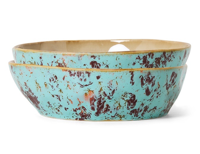 HKLiving 70s ceramics pasta bowls patina (set van 2), diepe keramieken borden met retroglazuur – ideaal voor pasta, risotto of salades. Lees meer