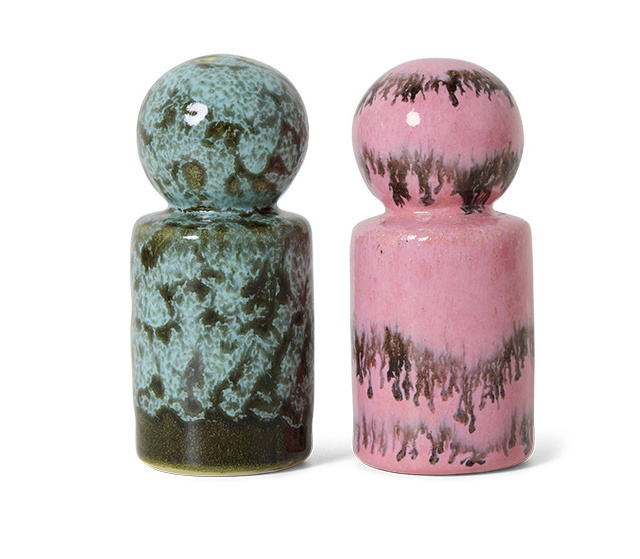 Geef je eettafel een artistieke twist met de HKLiving 70s ceramics peper- en zoutvat baroque. Deze set van twee kleurrijke shakers is gemaakt van hoogwaardig keramiek en afgewerkt met een opvallend glazuur dat elk stuk uniek maakt. Functioneel en decoratief tegelijk: ze zijn eenvoudig bij te vullen en liggen prettig in de hand. Of je nu houdt van retro vibes of een eclectische mix van stijlen, deze blikvangers tillen je tafeldecoratie naar een hoger niveau.