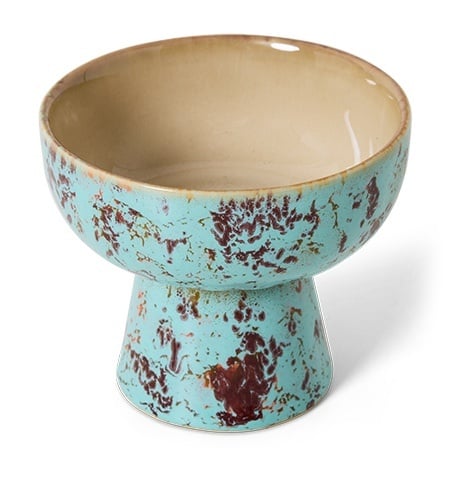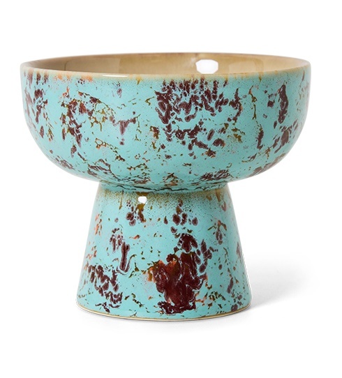 De HKLiving 70s ceramics tapas bowl on base S patina bewijst dat klein ook groots kan zijn. Dit compacte schaaltje op voet is ideaal voor nootjes, dips of kleine hapjes en brengt meteen wat speelse hoogte op tafel. Zoals bij de hele 70s ceramics collectie heeft elk stuk een handgemaakte, unieke glazuurafwerking die een retro knipoog combineert met eigentijdse flair.
