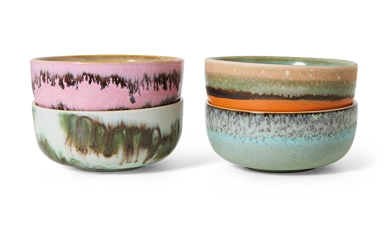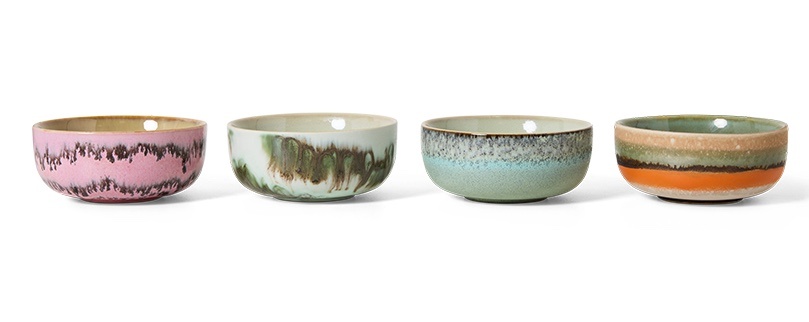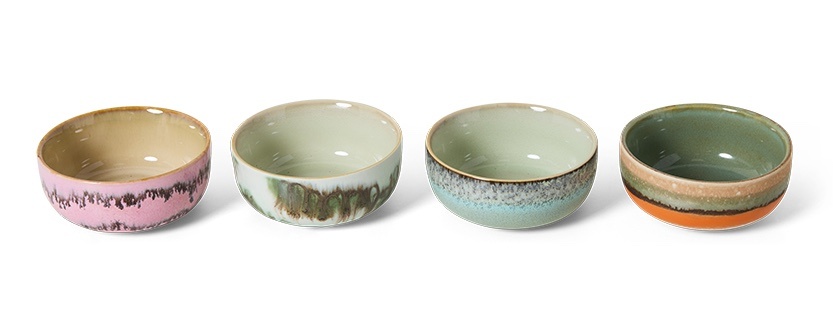 HKLiving 70s ceramics tapas bowls renaissance (set van 4), kleine keramieken kommetjes voor hapjes, dips en olijven. Lees meer