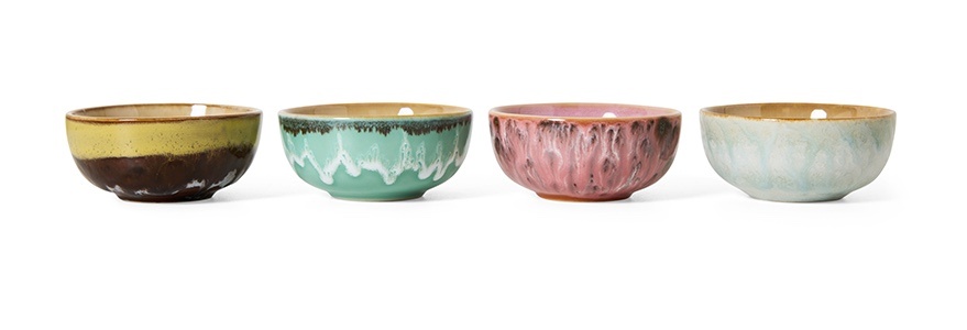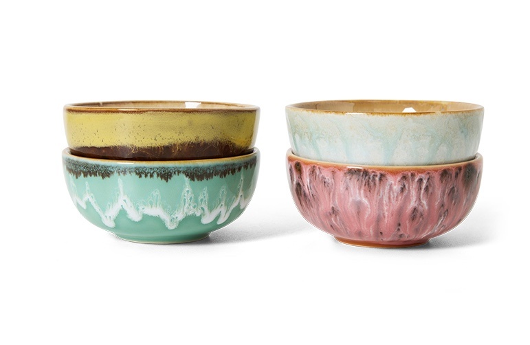 De set van vier brengt een vleugje seventies op tafel, en sluit mooi aan bij de andere stukken uit de 70s ceramics collectie. Compact, praktisch en toch stijlvol: details die het verschil maken.