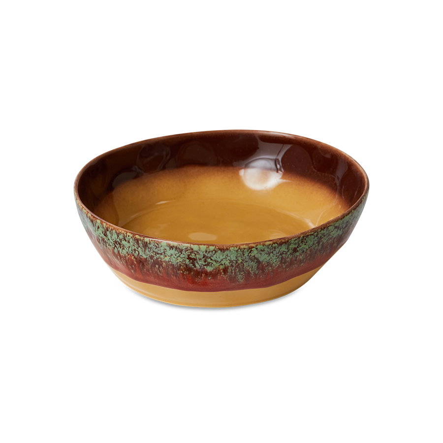 Het 70's servies is geïnspireerd op de dynamische jaren 70. Dit keer hebben de bowls een afwerking met een natuurlijke uitstraling, die doet denken aan ruige kustlijnen. De collectie brengt iconische vormen samen met frisse, eigentijdse details.
