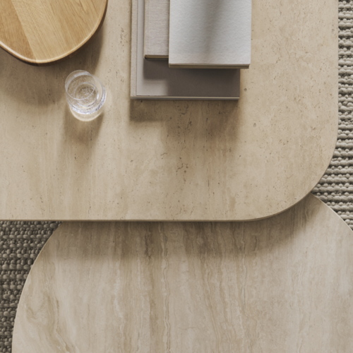 Travertijn is een natuurlijke kalksteen met zachte kleuren en een unieke structuur, veel gebruikt in meubels, tafels en interieurtoepassingen.