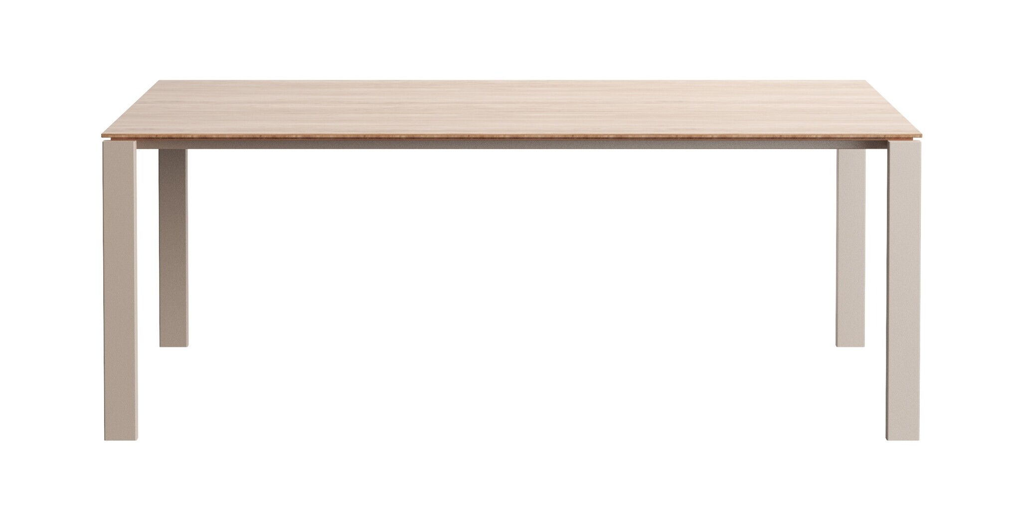 Dankzij de minimalistische vormgeving en hoogwaardige afwerking wordt de Altera al snel het visuele ankerpunt in je interieur. Het blad is opgebouwd uit drie lagen eik en verkrijgbaar in twee lamelbreedtes: standaard (40-60 mm) of SELECT (90 mm). De metalen poten, traverse en zijrails zijn in dezelfde kleur gelakt en zorgen voor een elegante, stabiele basis.