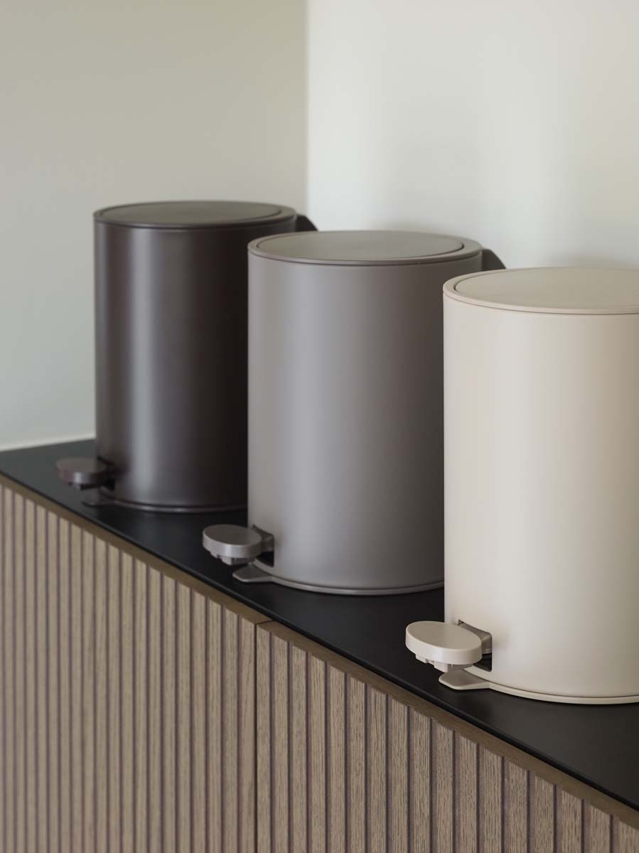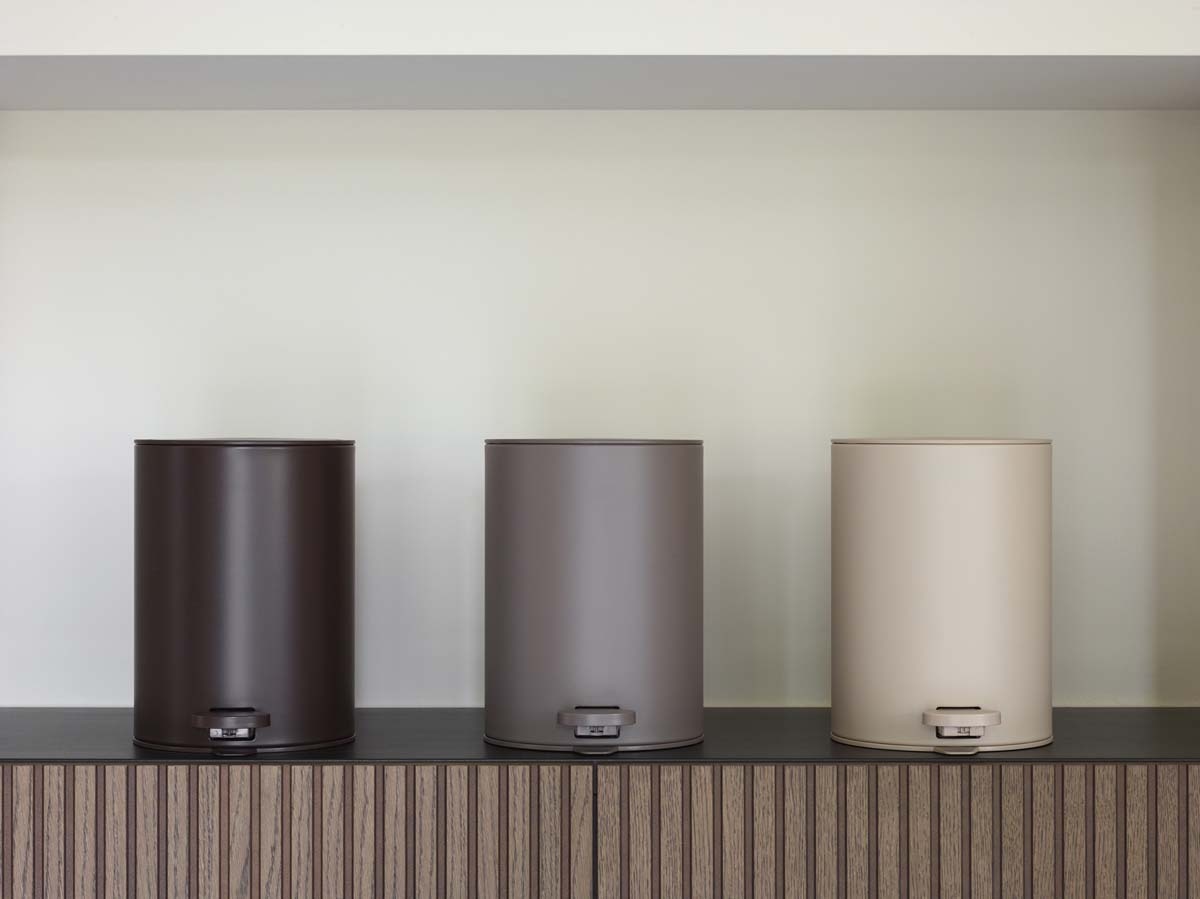Materiaal | Deze afvalemmer is gemaakt van ABS-kunststof (59%) met een matte poedercoating, gecombineerd met polypropyleen (27%) voor de binnenemmer, basis en achterzijde, en metaal (14%) voor het pedaalmechanisme en structurele stevigheid. |