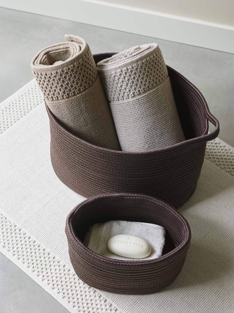 Zacht voor je voeten én voor de planeet – de Yuna badmat van Aquanova in de warme kleur truffle combineert comfort met duurzaamheid. Met zijn formaat van 70 x 120 cm past deze badmat perfect voor je bad of douche. Hij is gemaakt van 100% biologisch katoen, GOTS-gecertificeerd, en voelt heerlijk zacht aan. De geweven structuur zorgt voor een tijdloze uitstraling in elke badkamer. Praktisch, stijlvol en eerlijk geproduceerd: de Yuna badmat is een kleine luxe die groot aanvoelt.