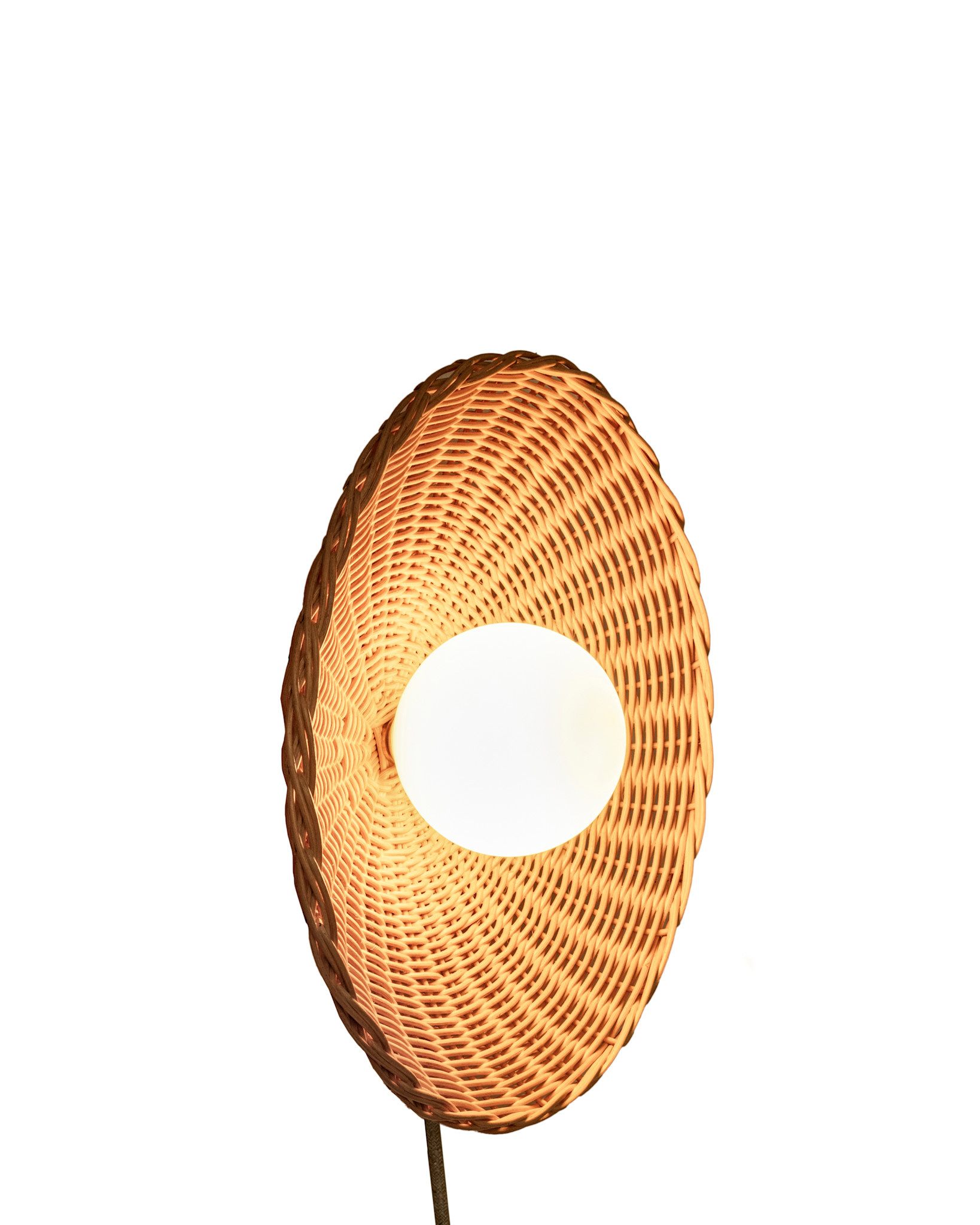 | Materiaal | Deze wandlamp is gemaakt van rotan en afgewerkt met een messing fitting, een combinatie van natuurlijke charme en subtiele elegantie. |