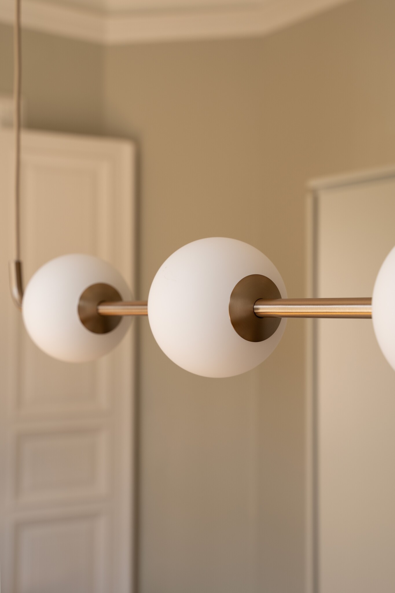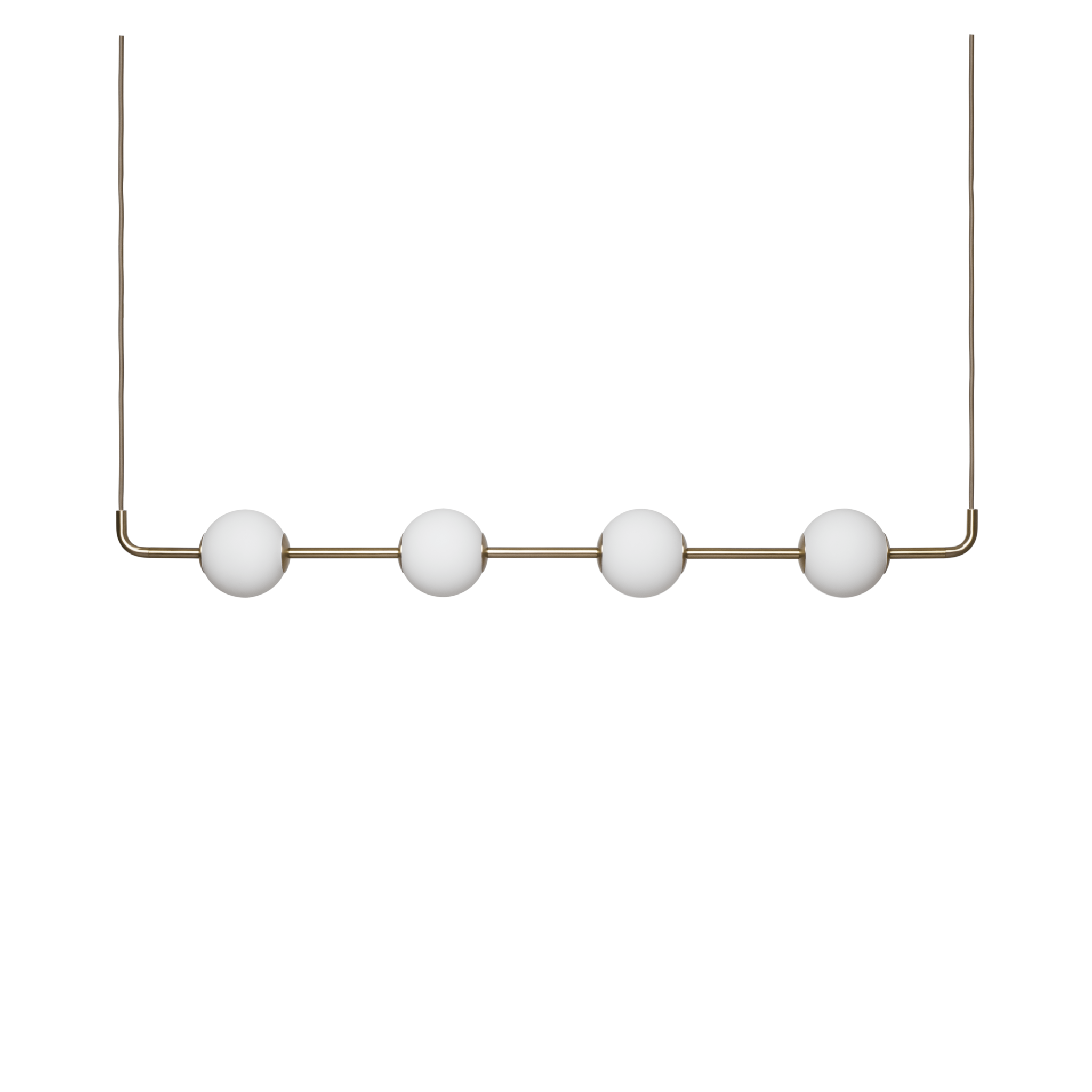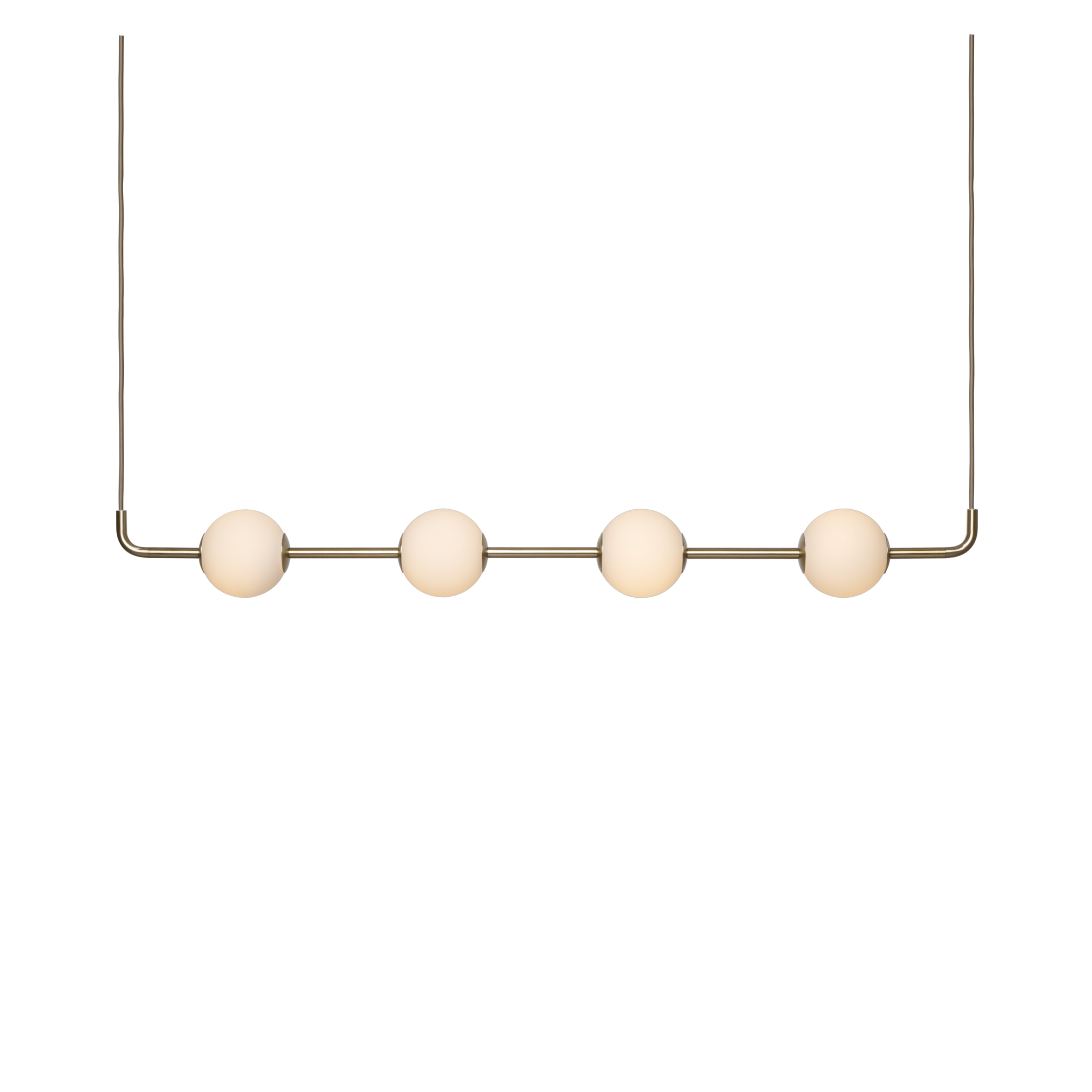 Alsof parels zweven aan een draad: zo presenteert de Audrey Linear hanglamp zich in je interieur. Deze sculpturale pendel van Umage combineert zacht geblazen opaalglas met een verfijnd messing frame tot een opvallend evenwichtige vorm. De vier lichtbollen zorgen voor een warme, zachte gloed. Ideaal boven een eettafel, kookeiland of werkruimte.