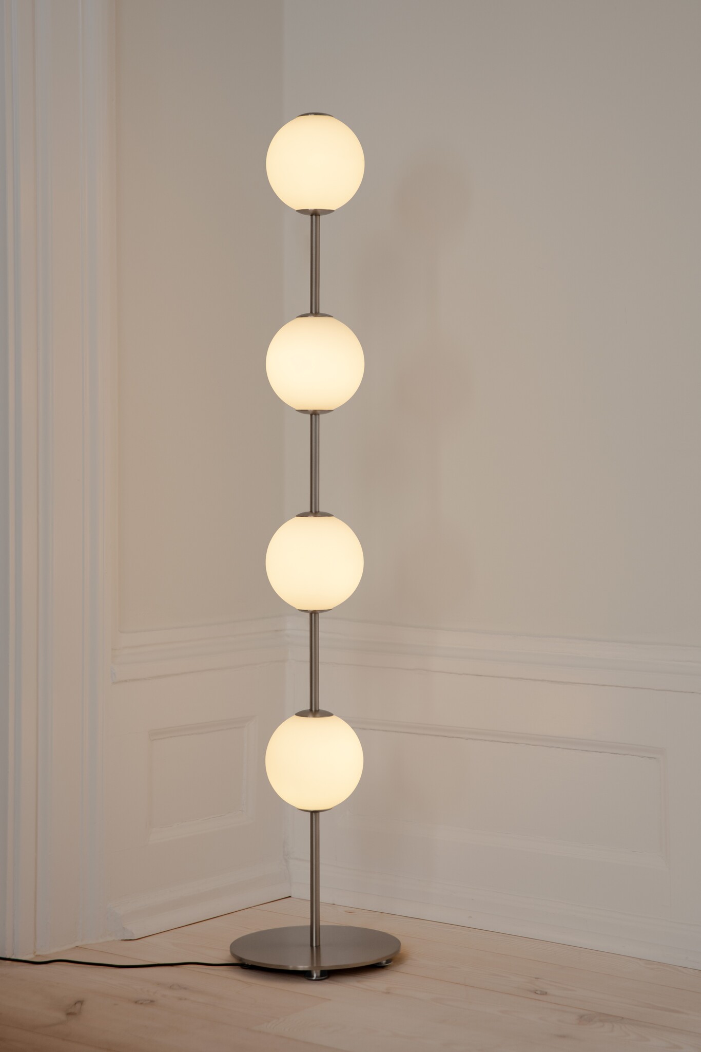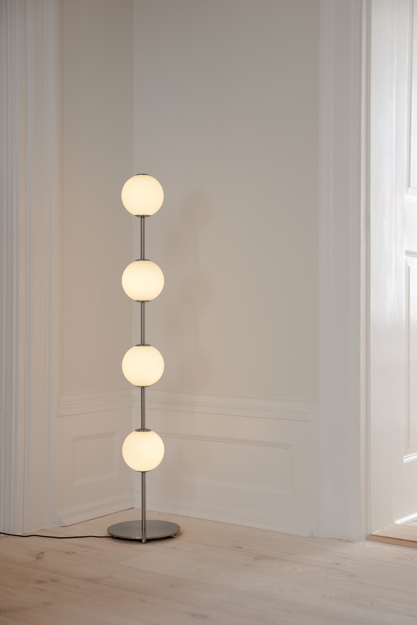 Zacht, sfeervol en elegant — de Audrey vloerlamp van Umage is als een parelsnoer in je interieur. De mondgeblazen opaalglazen bollen stralen een warme gloed uit, terwijl de slanke chroom details voor een tijdloze uitstraling zorgen.