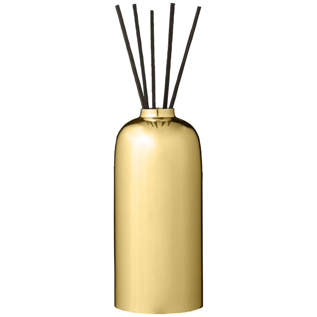 Decoratief omhulsel in messing voor het verbergen van die saaie geurolieflesjes.