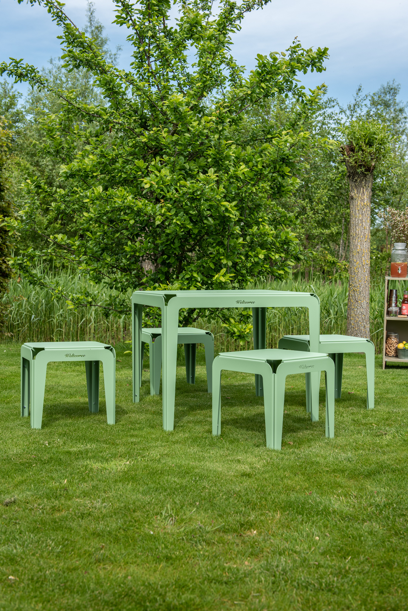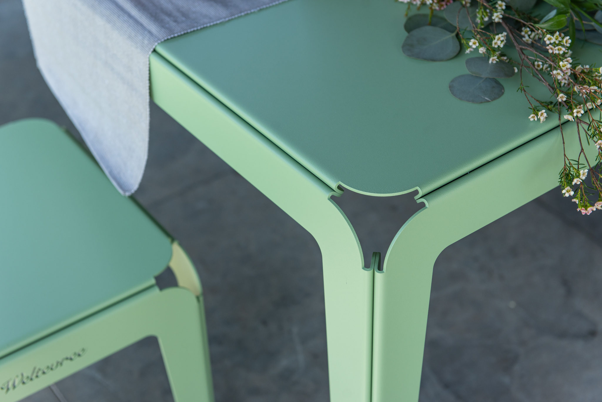 Ongeacht de ondergrond, de slimme en lichte Bended tuintafel van Weltevree wiebelt niet. Lees meer