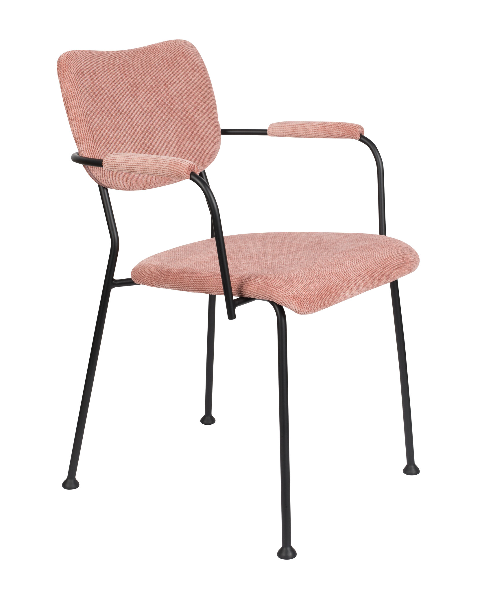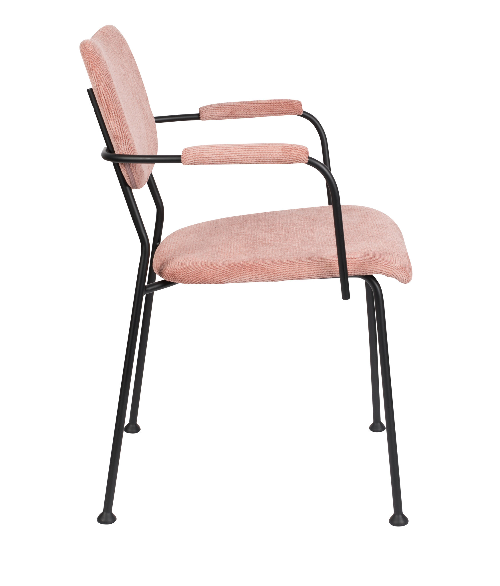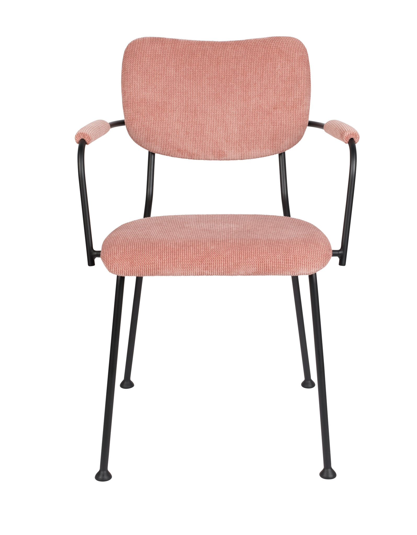 De Benson eetkamerstoel met armleuningen in een zachtroze tint is een eyecatcher met een knipoog. Die speelse poten met ‘chair shoes’ geven hem karakter, terwijl de armleuningen comfy support bieden. Dankzij het slanke metalen frame én de aaibare polyester zitting voelt hij chic én huiselijk aan. Geen saaie eettafel meer, maar een stijlvolle plek waar gezelligheid vanzelf ontstaat.