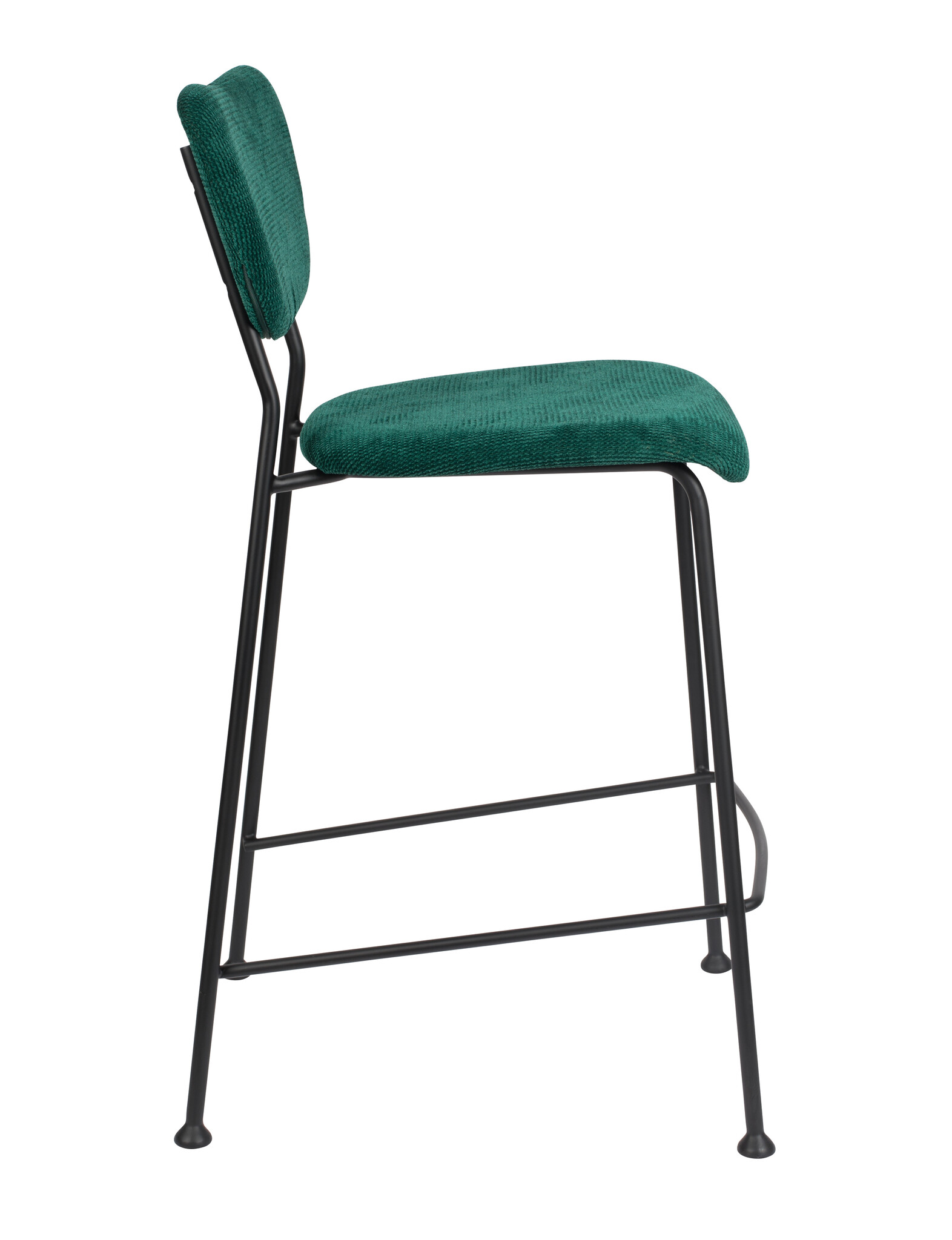 De Benson counterstoel doet wat hij moet doen, maar dan met stijl. De zithoogte van 64,5 cm maakt ‘m ideaal voor keukeneilanden of tafels op barhoogte, terwijl de donkerblauwe bekleding zorgt voor een elegante toets in je interieur. Hij zit comfortabel, oogt verfijnd en heeft net dat tikje luxe zonder te overdrijven. De subtiele rondingen van de zitting en de slanke poten zorgen voor een evenwichtige, moderne uitstraling. Functioneel én mooi, zoals het hoort.