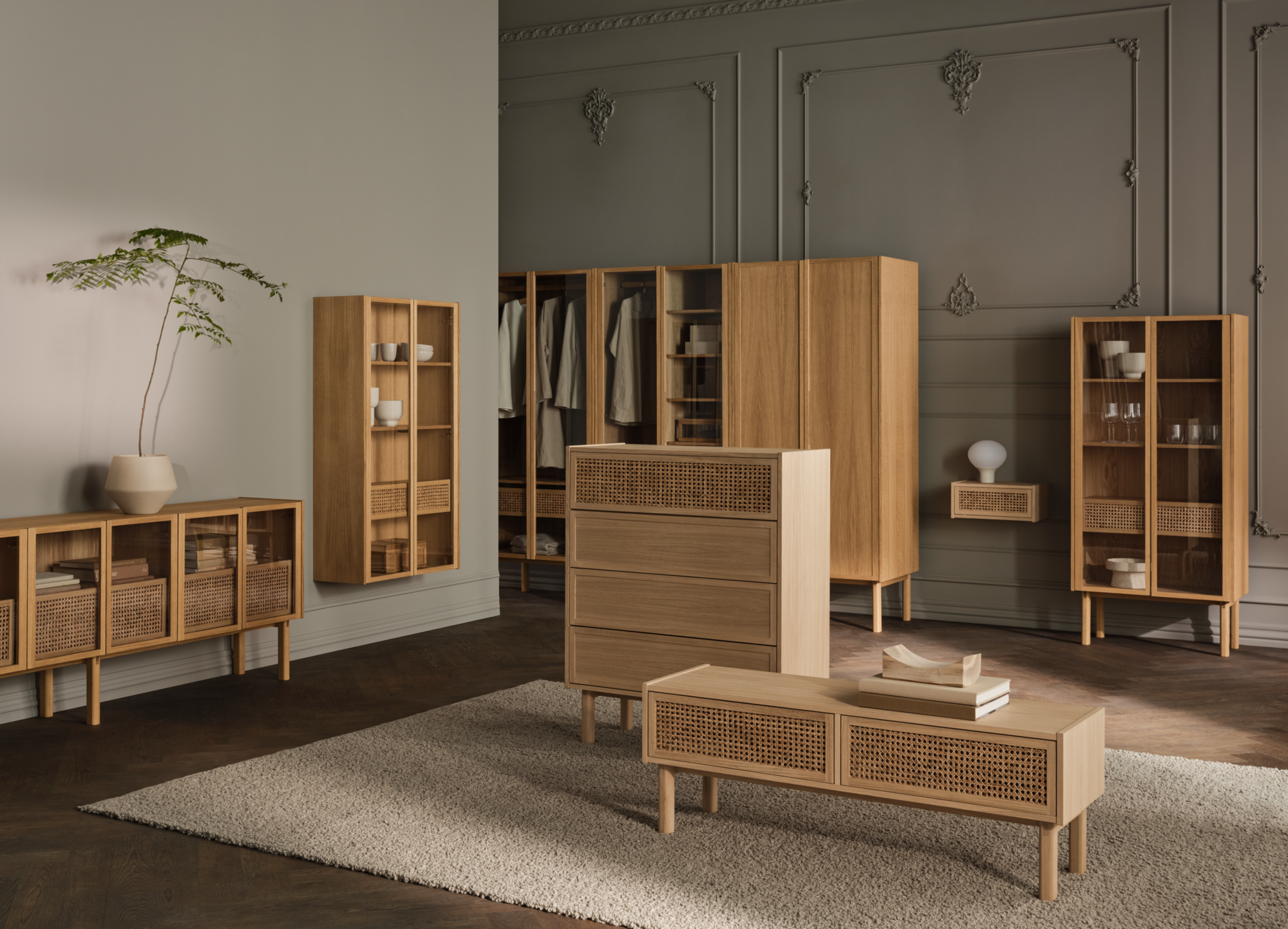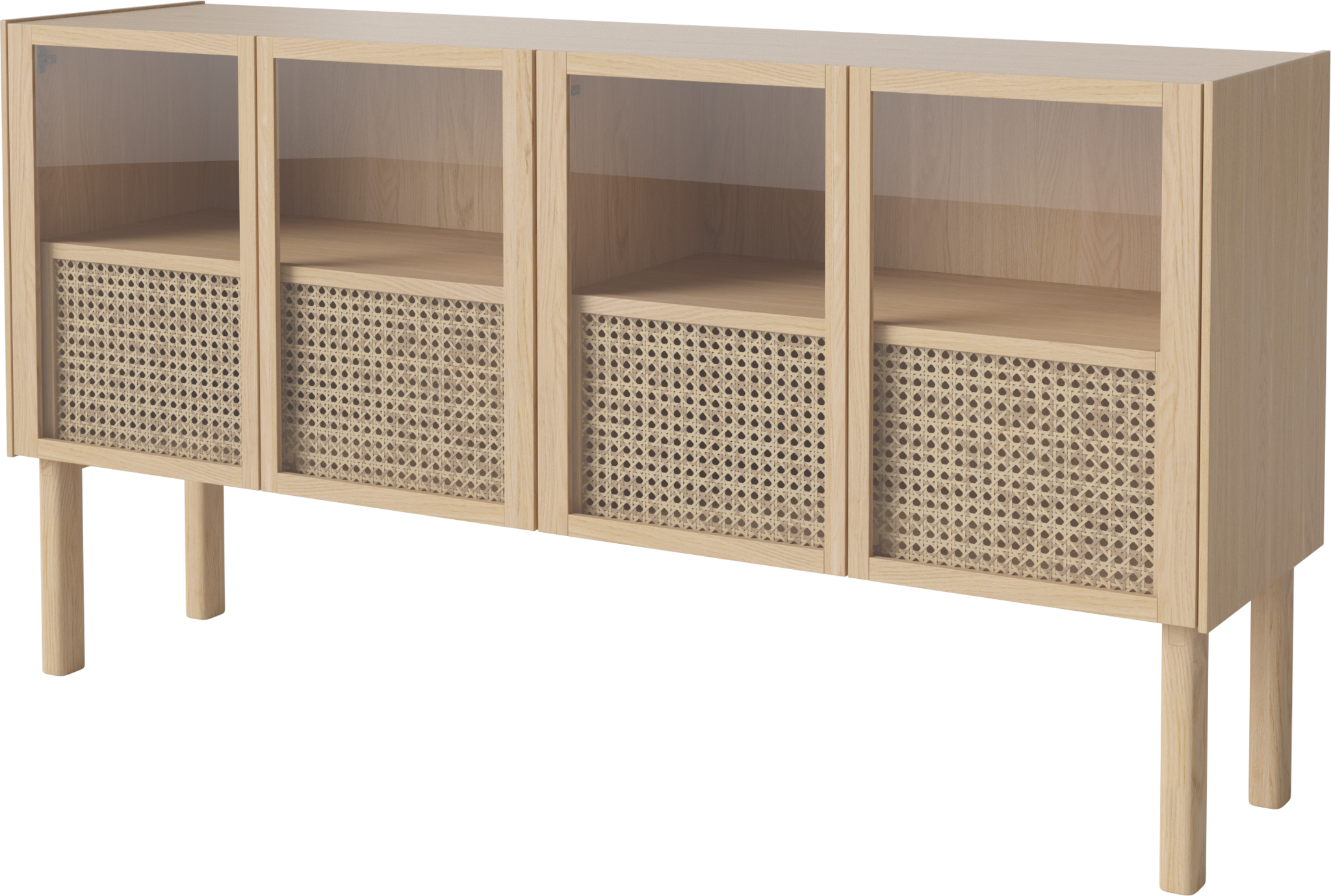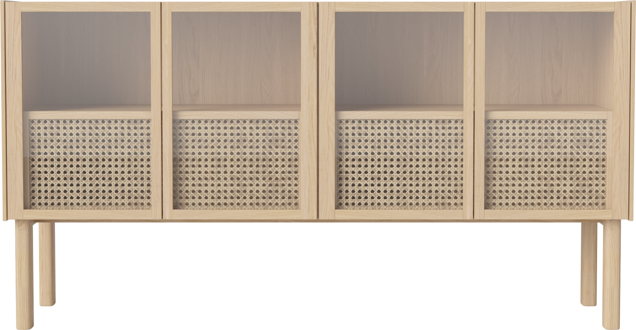 Door de luchtige voorkant van de Cana dressoir van Bolia krijgen je spulletjes een prachtige, decoratieve verblijfplaats. Cana is een uitnodigende lijn met boekenkasten, dressoirs en wandkastjes. Een eerlijk display en een licht ontwerp zijn kenmerkend voor de lijn, ontworpen door het Deense duo Steffensen & Würtz. Ze lieten zich inspireren door de rustgevende sfeer van de Deense strandhotels waar sereniteit, kalmte en puurheid heerst. Het transparante, luchtige gevoel van het ontwerp ondersteunt dit idee, terwijl het het visuele aspect strak en overzichtelijk houdt.