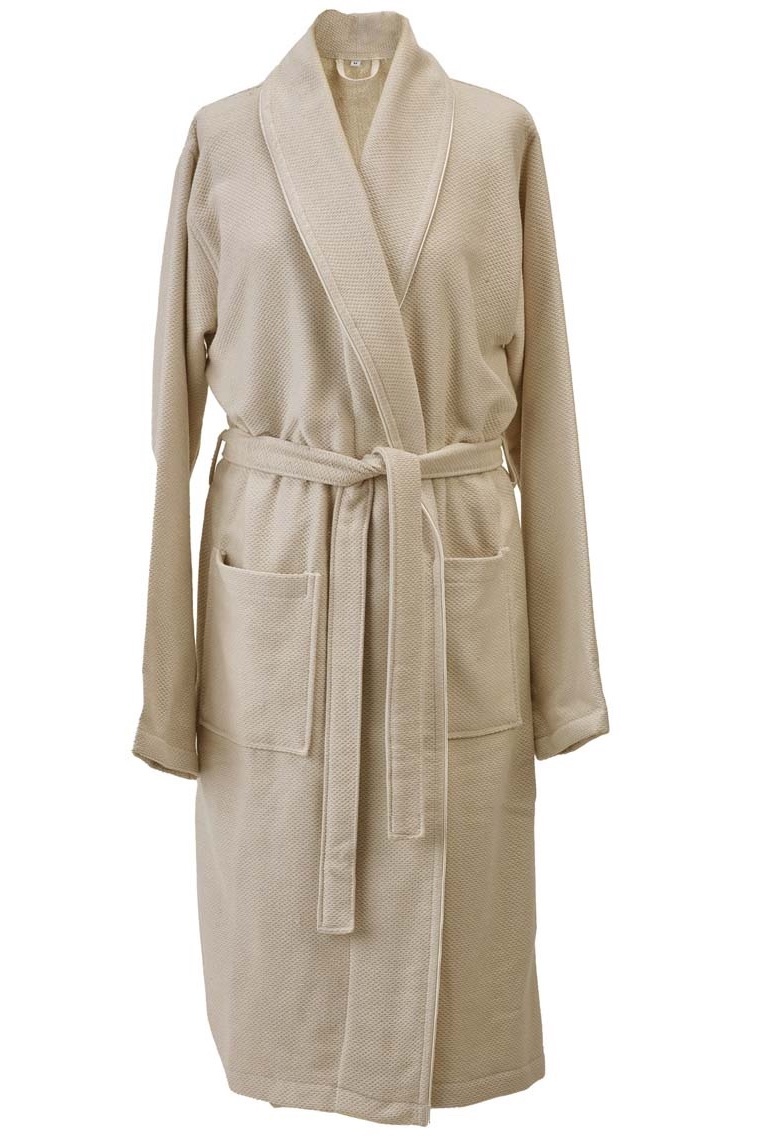 De Brooklyn badjas van Aquanova is een verfijnde essential voor wie comfort én stijl belangrijk vindt. De kleur Almond – een warme, zandachtige tint – straalt rust en tijdloosheid uit. Aan de buitenzijde voelt de jacquard geweven stof luxueus aan, terwijl de binnenzijde voorzien is van zachte, absorberende badstof (terry). Een ideale combinatie voor na het bad, de sauna of gewoon op een ontspannen ochtend.