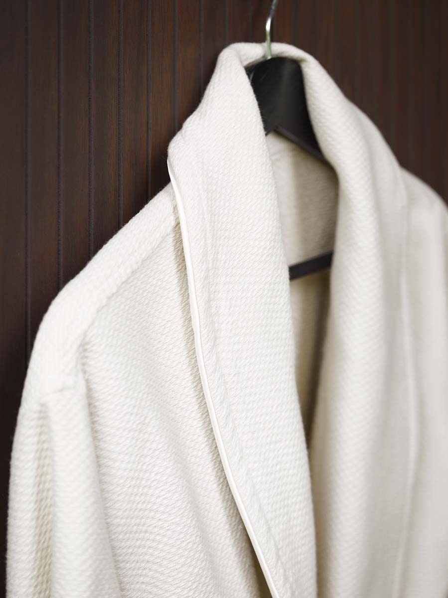 Materiaal | Deze badjas is vervaardigd uit 100% biologisch katoen met GOTS-certificering, wat staat voor milieuvriendelijke productie en duurzame kwaliteit. De binnenkant is terry katoen, bekend om zijn zachte en absorberende eigenschappen, terwijl de buitenkant jacquard geweven is voor een elegante uitstraling. |