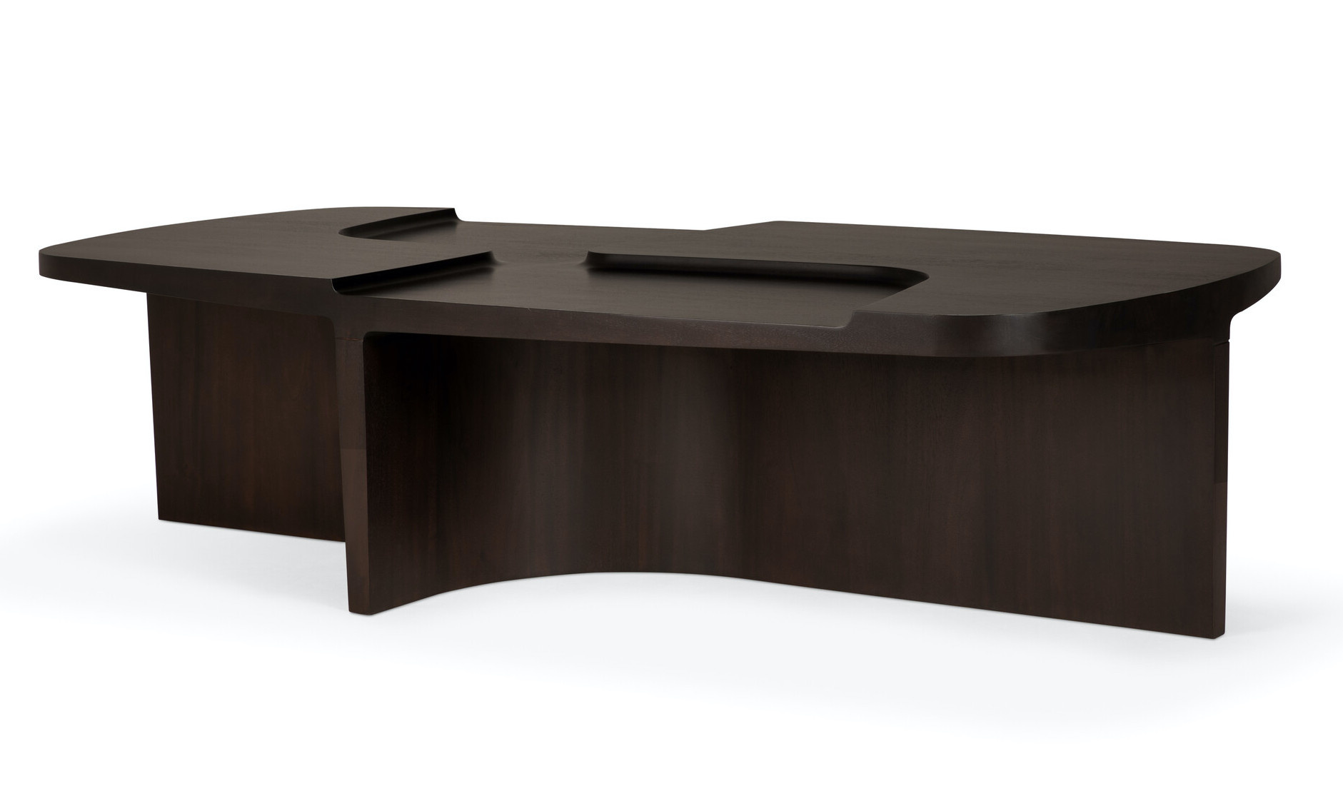 De Ethnicraft Brutalist koffietafel in massief mahonie rose brown combineert krachtig design met warme elegantie en een uitgesproken architecturaal karakter. Lees meer