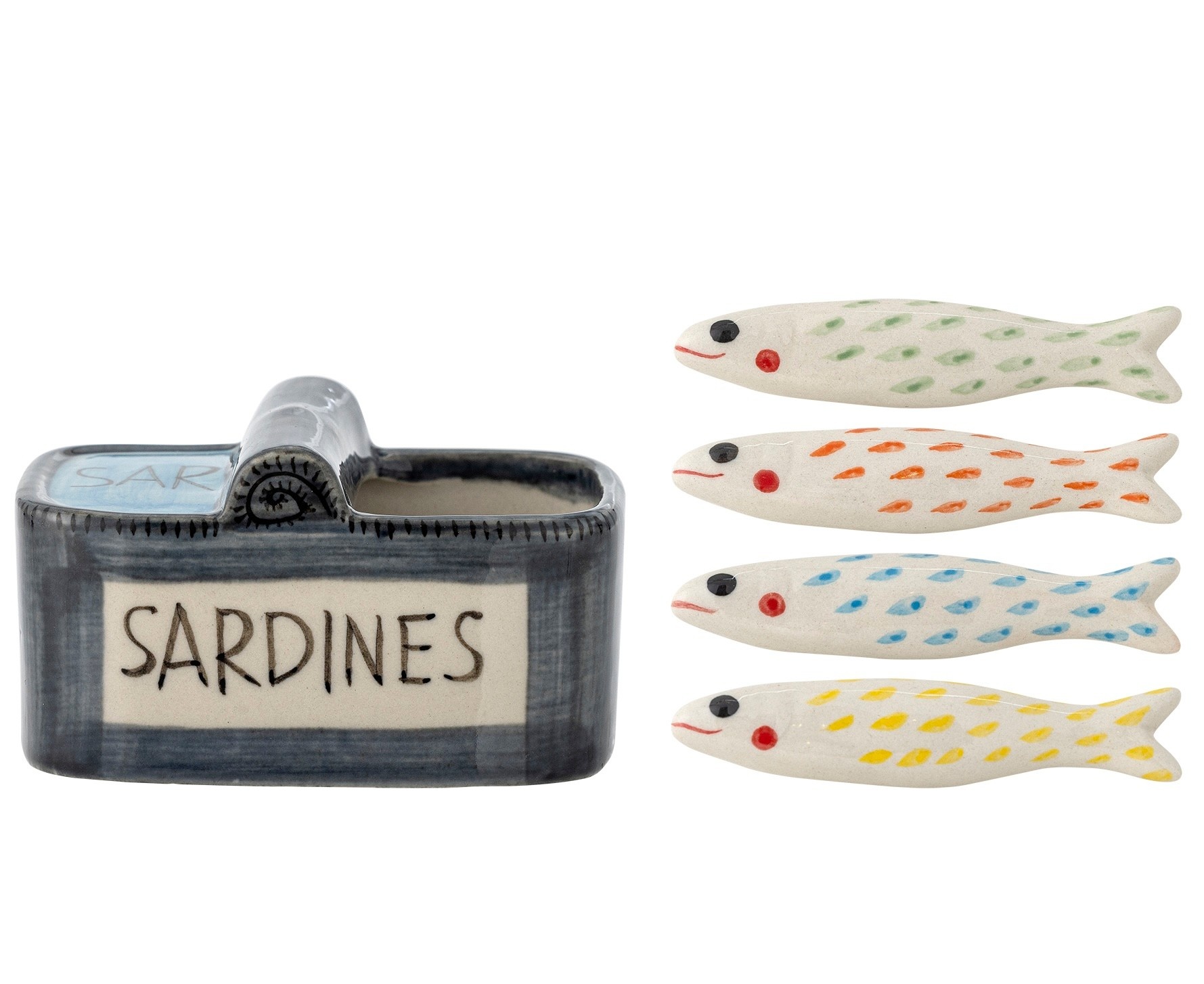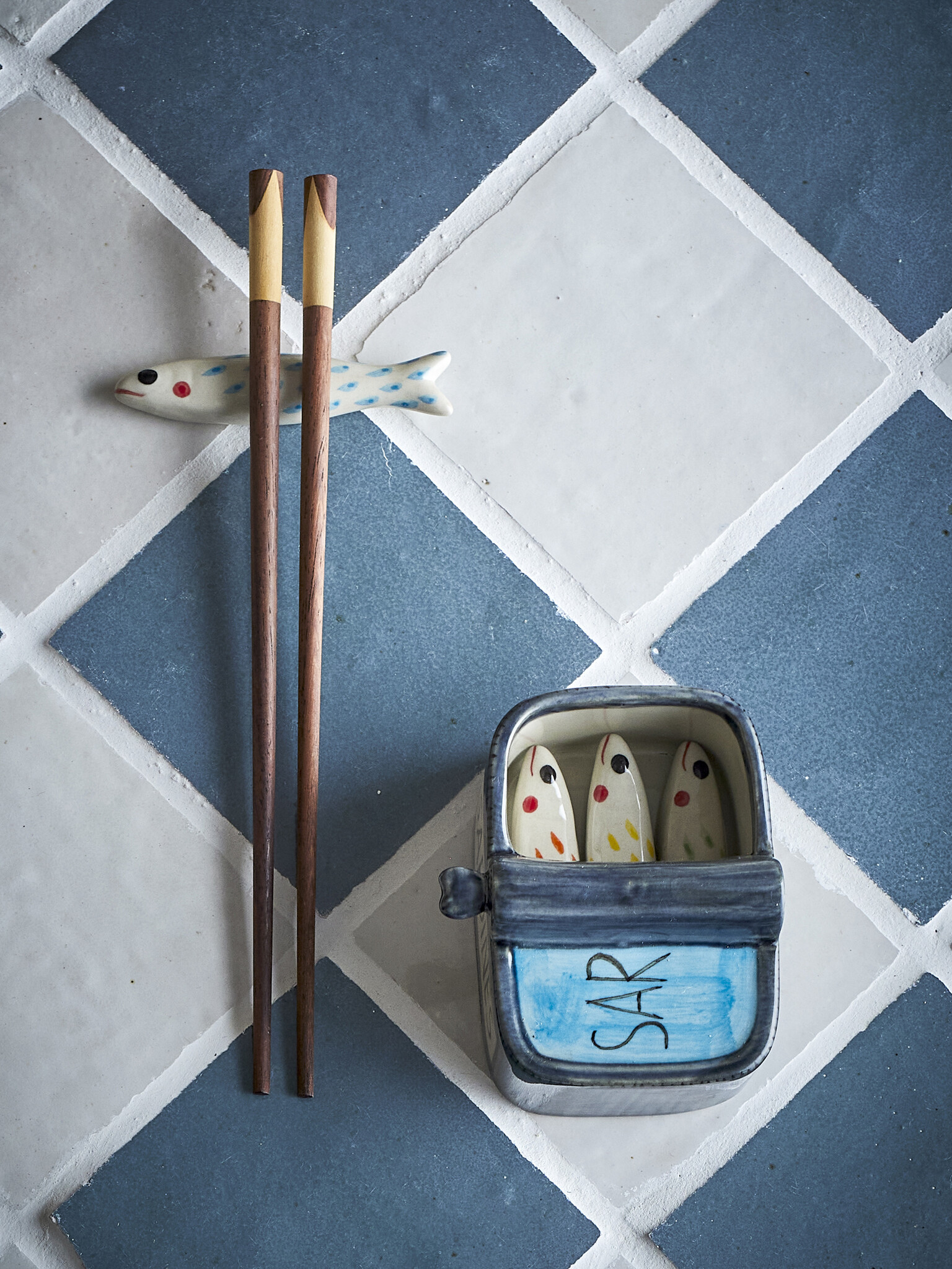 Creative Collection Caiam set van vijf eetstokjeshouders in handbeschilderd keramiek met visvormige details. Lees meer