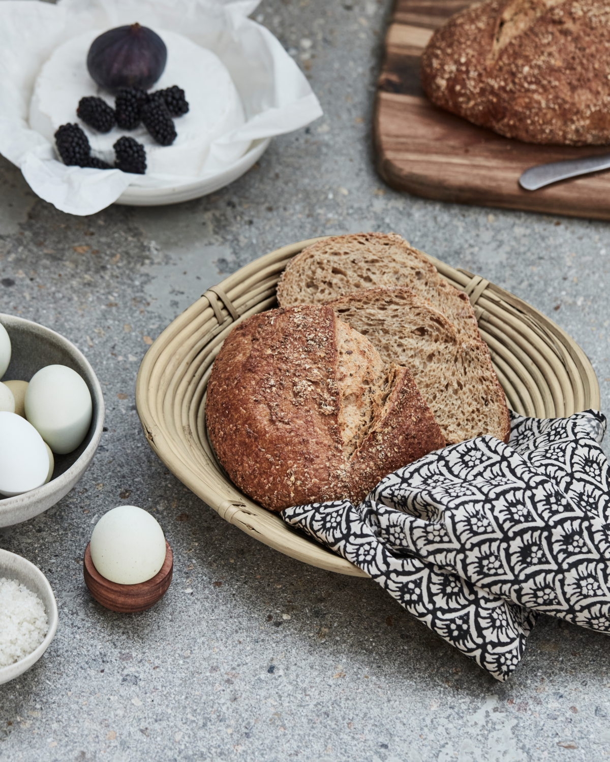 Deze handgevlochten mand van rattan en bamboe is perfect om droge etenswaren in te bewaren of te gebruiken als sfeervolle broodmand op tafel. De natuurlijke kleur en het fijne vlechtwerk maken dit een veelzijdig accessoire dat prachtig past binnen elke keukenstijl – van modern landelijk tot minimalistisch Scandinavisch. Dankzij het platte, lage ontwerp is de mand niet alleen praktisch, maar ook een subtiele blikvanger in je interieur.