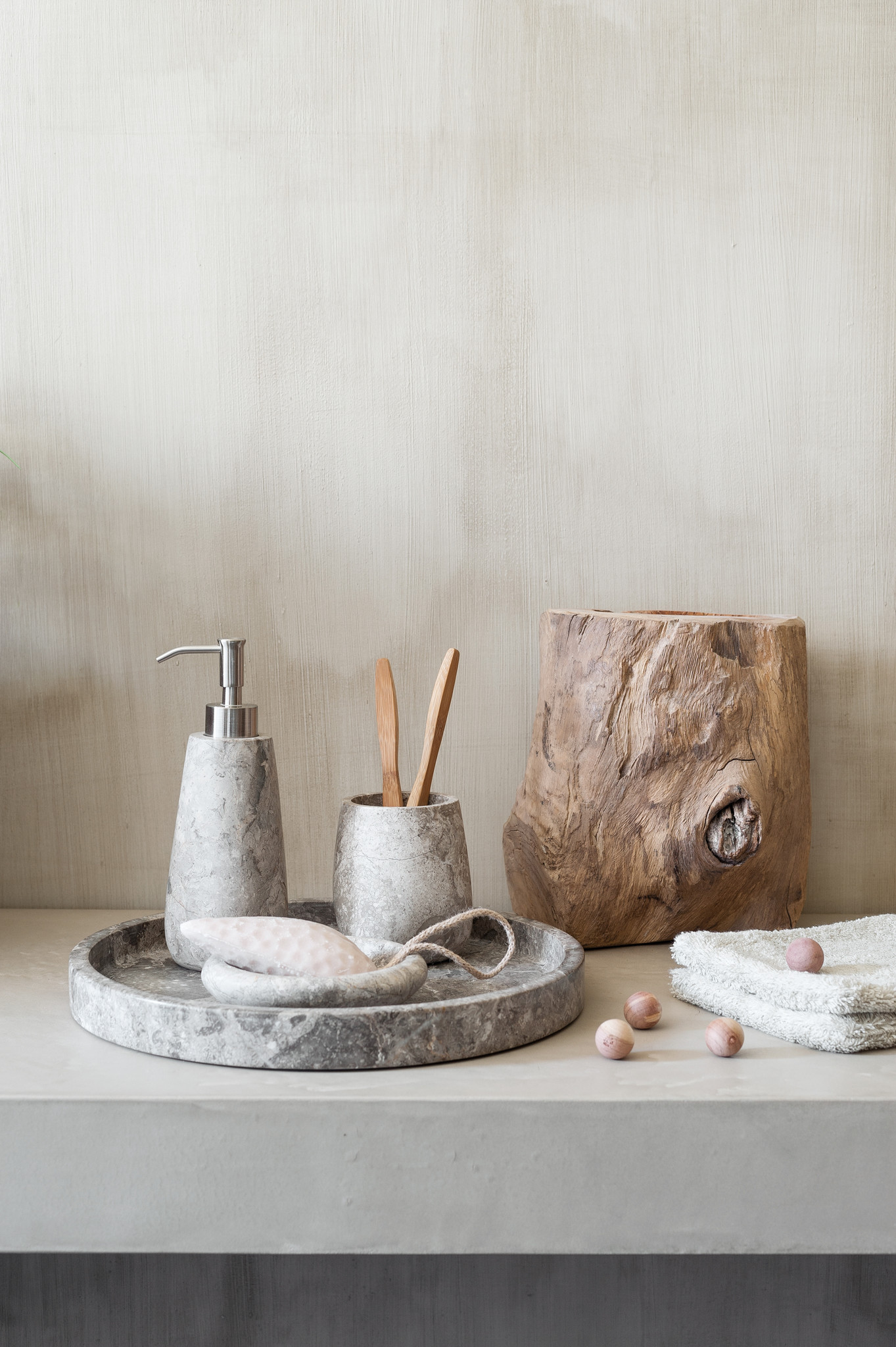 De Conor zeepdispenser is gemaakt uit sfeervolle natuursteen die de luxesfeer van de Conor accessoireslijn kenmerkt. De zeephouder is een mooie aanvulling bij andere accessoires op je badkamer en een sfeervolle aankleding van je wastafel.