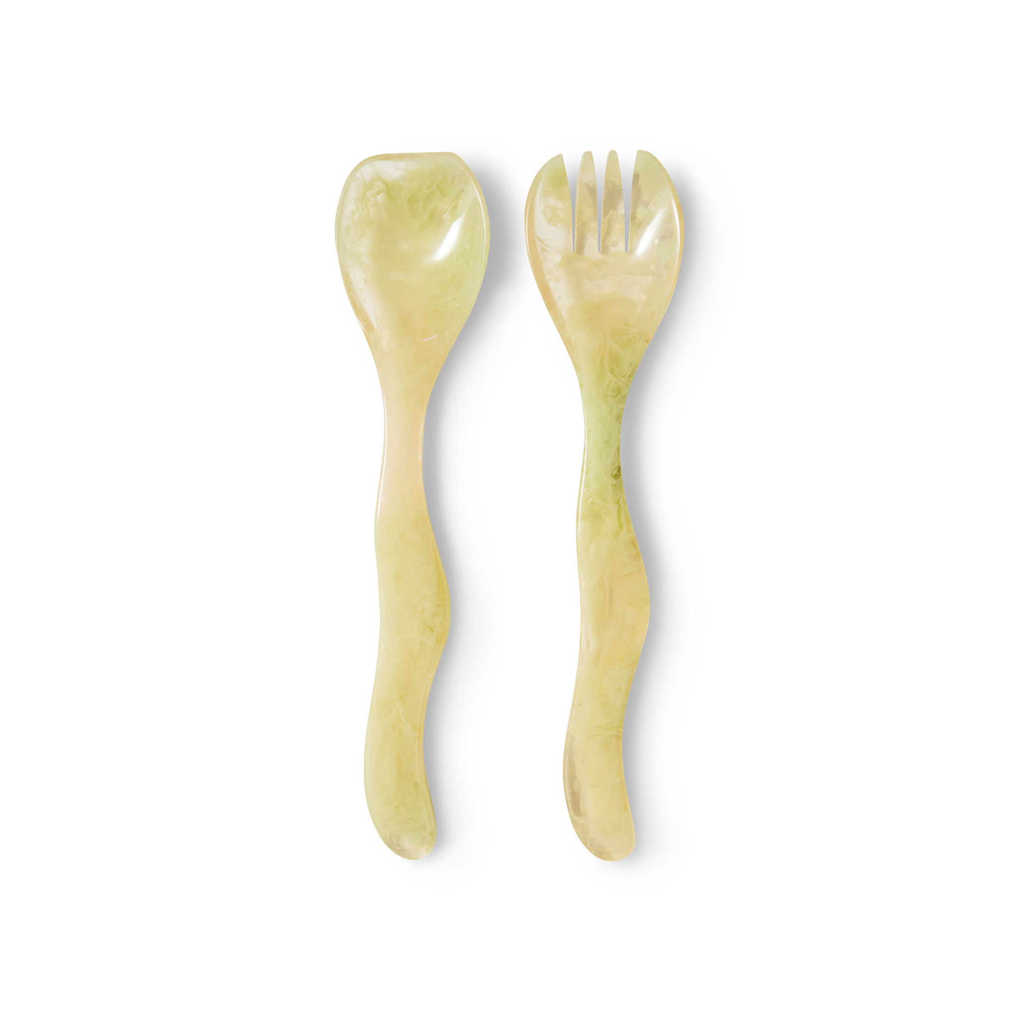 Het saladebestek Mist Green van HKLiving brengt een frisse, speelse toets naar elke tafelsetting. Met zijn zachte groene tint en organische lijnen oogt deze set even elegant als eigentijds.