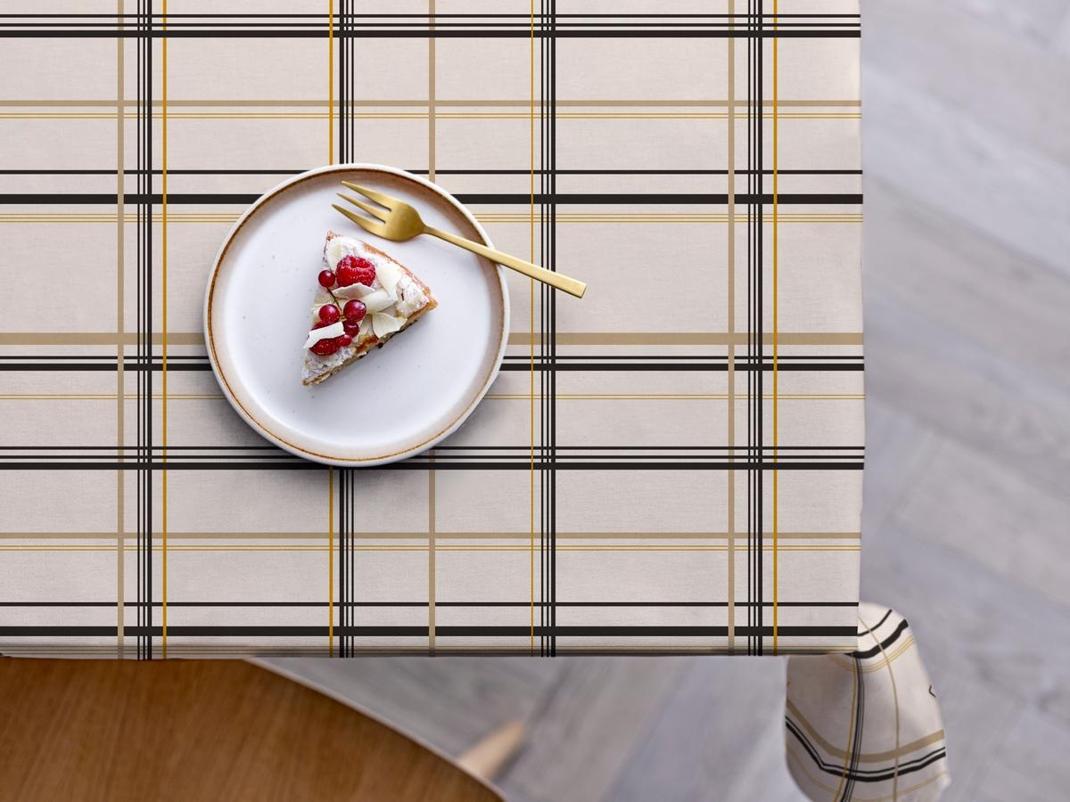 Södahl Define afwasbaar tafelkleed per cm: 100% katoen met coating en antislip, beige met subtiele gouden glans, praktisch en stijlvol. Lees meer