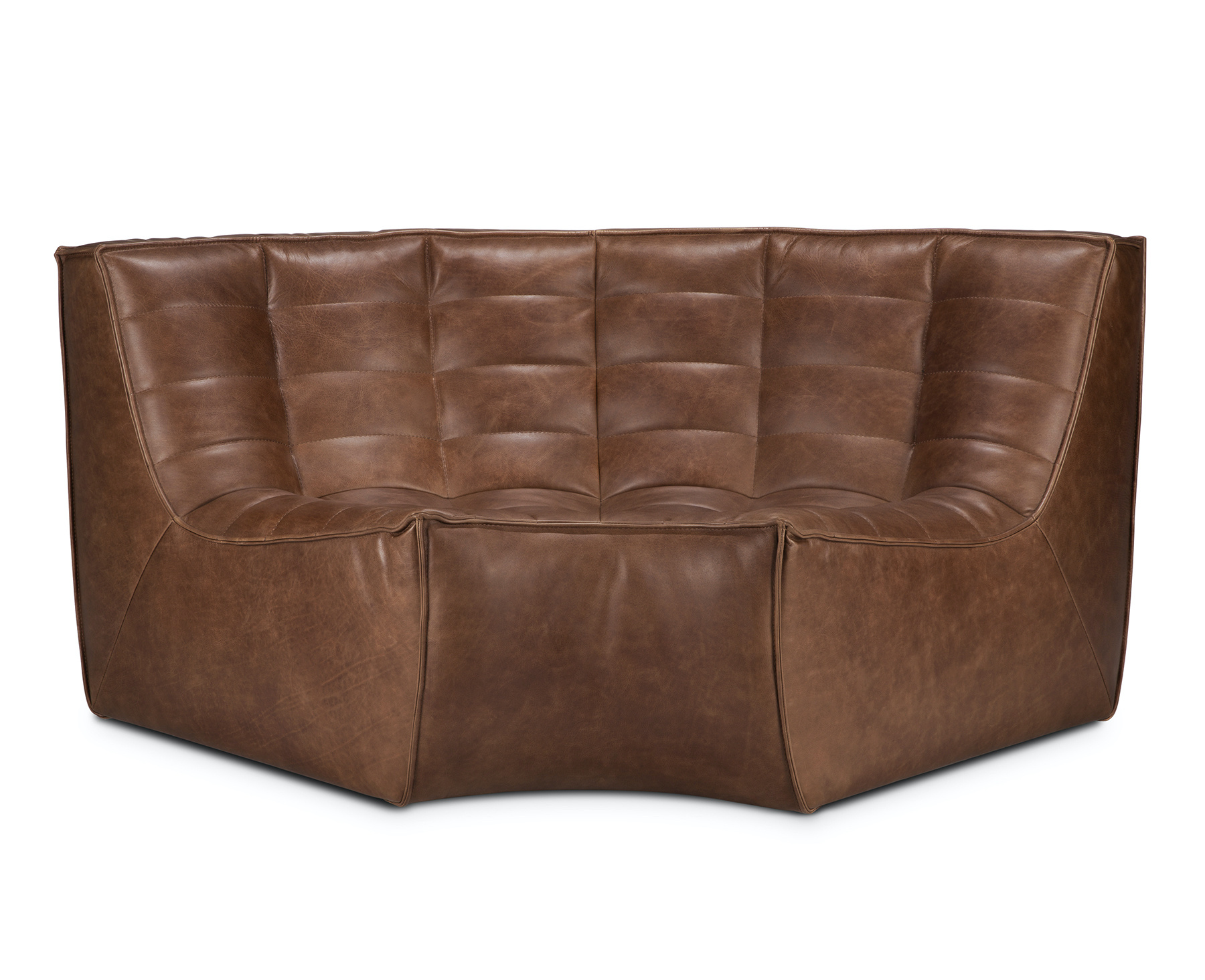 Het rond hoekelement in Chestnut leder is pure uitnodiging tot ontspanning. Ontworpen door Jacques Deneef, straalt dit zitmeubel een zachte, afgeronde elegantie uit die perfect past in zowel moderne als warme interieurs.