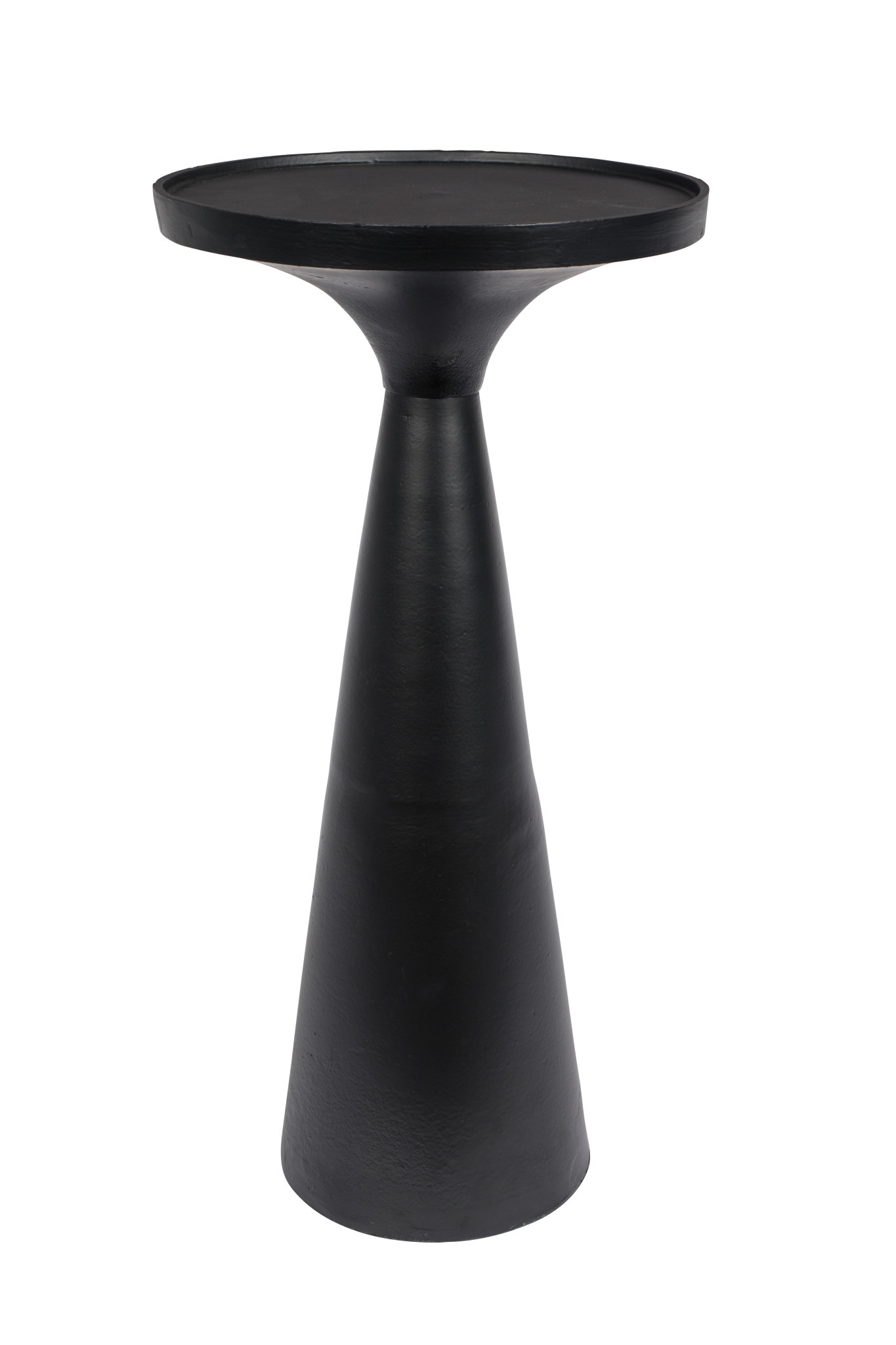 De bijzettafel is volledig uitgevoerd in aluminium en afgewerkt in zwart met een zijdeachtige glans. Dat geeft haar een verfijnde uitstraling zonder hard te worden in je interieur. Subtiel aanwezig, maar zeker niet saai.