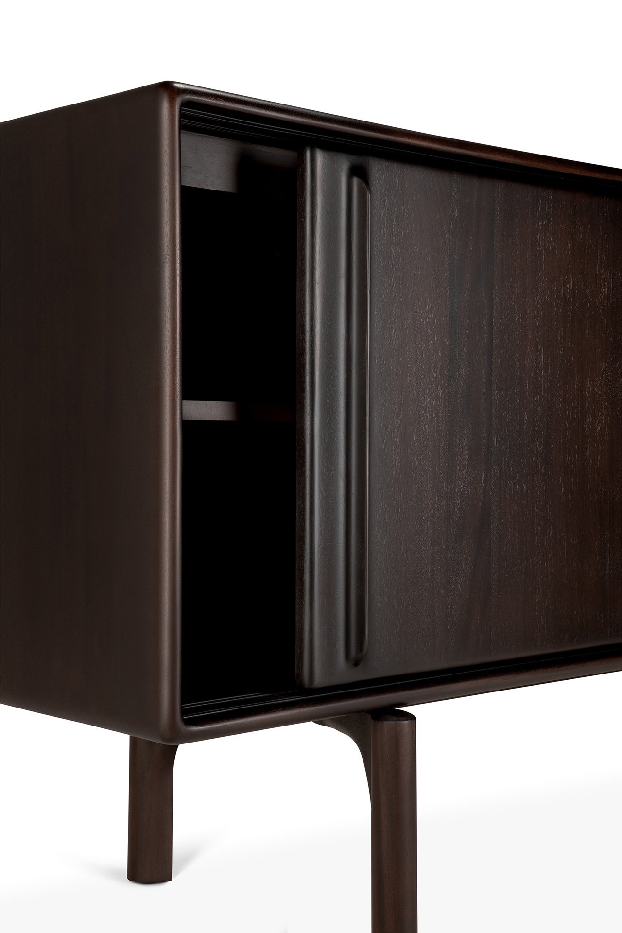 De Ethnicraft Flow dressoir van 224 cm in rozebruin mahoniehout straalt zachte elegantie uit met vloeiende lijnen, schuifdeuren en tijdloos design. Lees meer