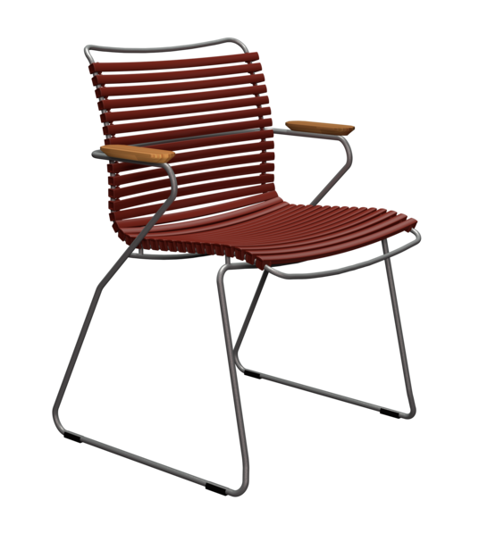 CLICK est une collection de mobilier outdoor composée de lamelles en plastique intelligemment conçues, combinées à du métal laqué par poudrage. Chaque composant est soigneusement façonné pour donner aux lamelles la résistance et la flexibilité nécessaires, offrant un confort d'assise optimal sans coussin supplémentaire.