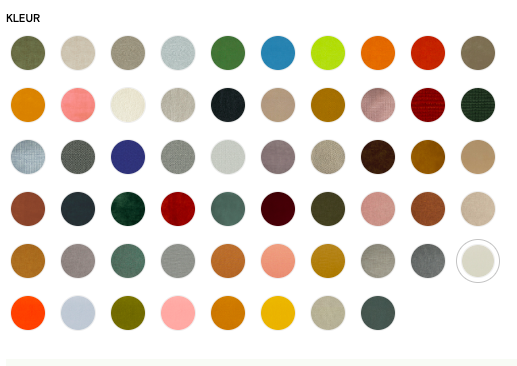 Droom je van een andere kleuroptie? Je kan alle staaltjes bezichtigen en elke variant bestellen in onze winkel.