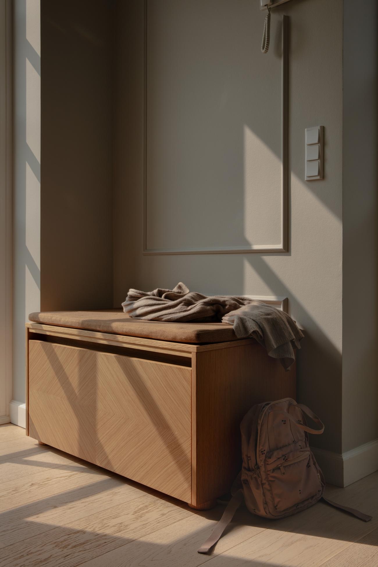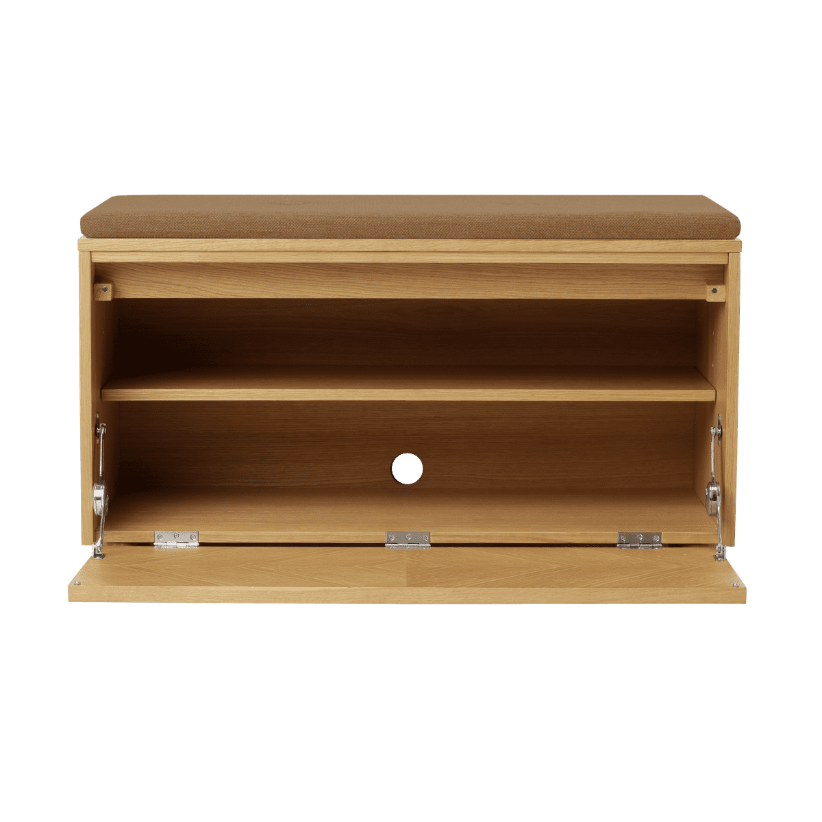 De Hideaway opbergbank van Umage is ontworpen om op een natuurlijke manier orde en rust te brengen in je interieur. Vervaardigd uit eikfineer met een verfijnde houtstructuur en een elegant patroon op de klapdeur, straalt dit meubel Scandinavische klasse uit — subtiel en functioneel tegelijk.
