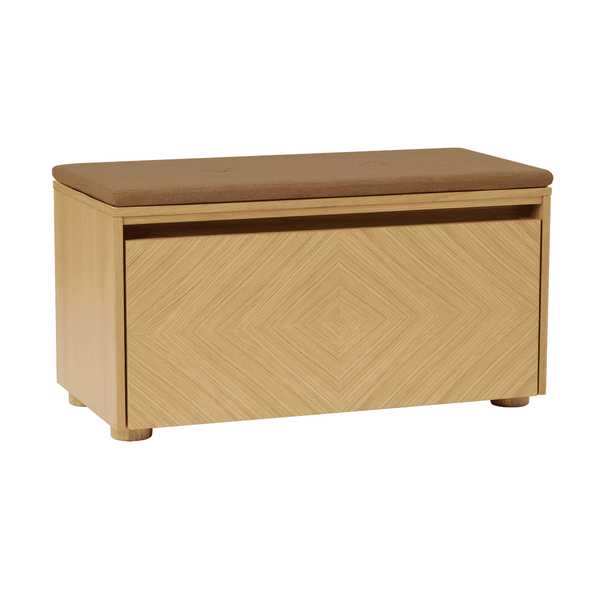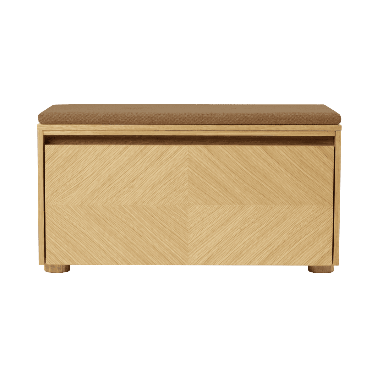 De Umage Hideaway opbergbank in eik met Sugar Brown Cushion verenigt tijdloos design, slimme opbergruimte en zacht zitcomfort in één verfijnde blikvanger. Lees meer