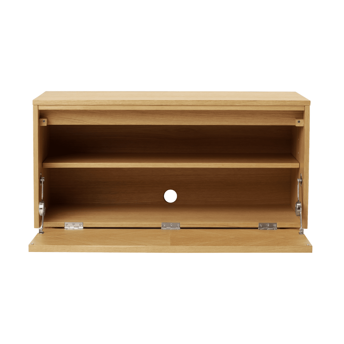 De Hideaway biedt niet alleen opbergruimte, maar ook rust: kabels, speelgoed of schoenen verdwijnen stijlvol uit het zicht, terwijl de natuurlijke uitstraling van eik warmte toevoegt aan elk interieur. Een stuk dat meegaat met je levensstijl, niet ertegenin.