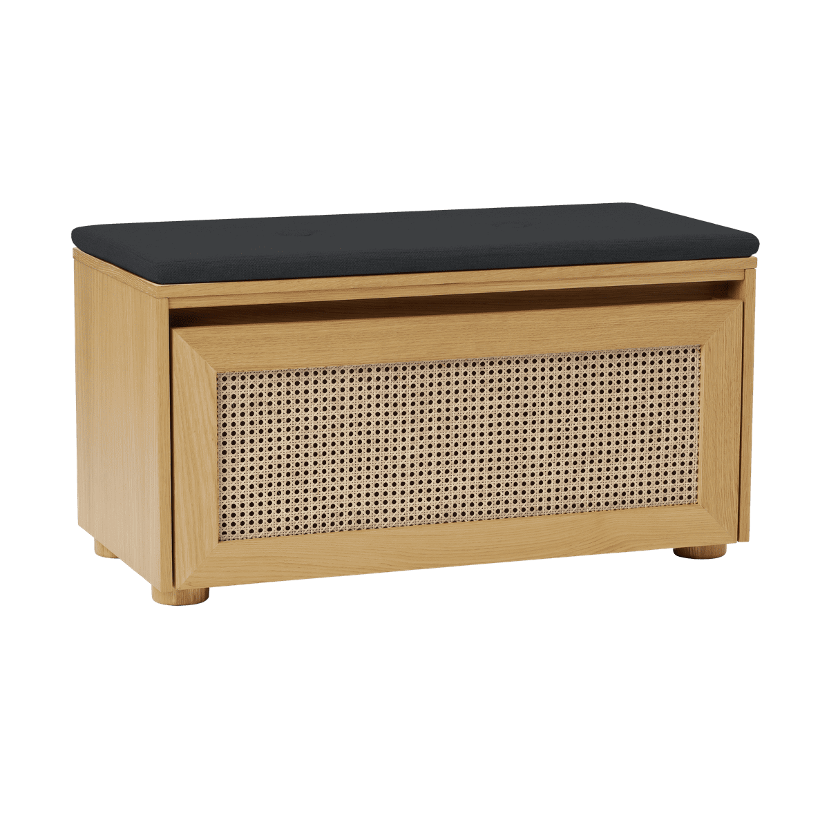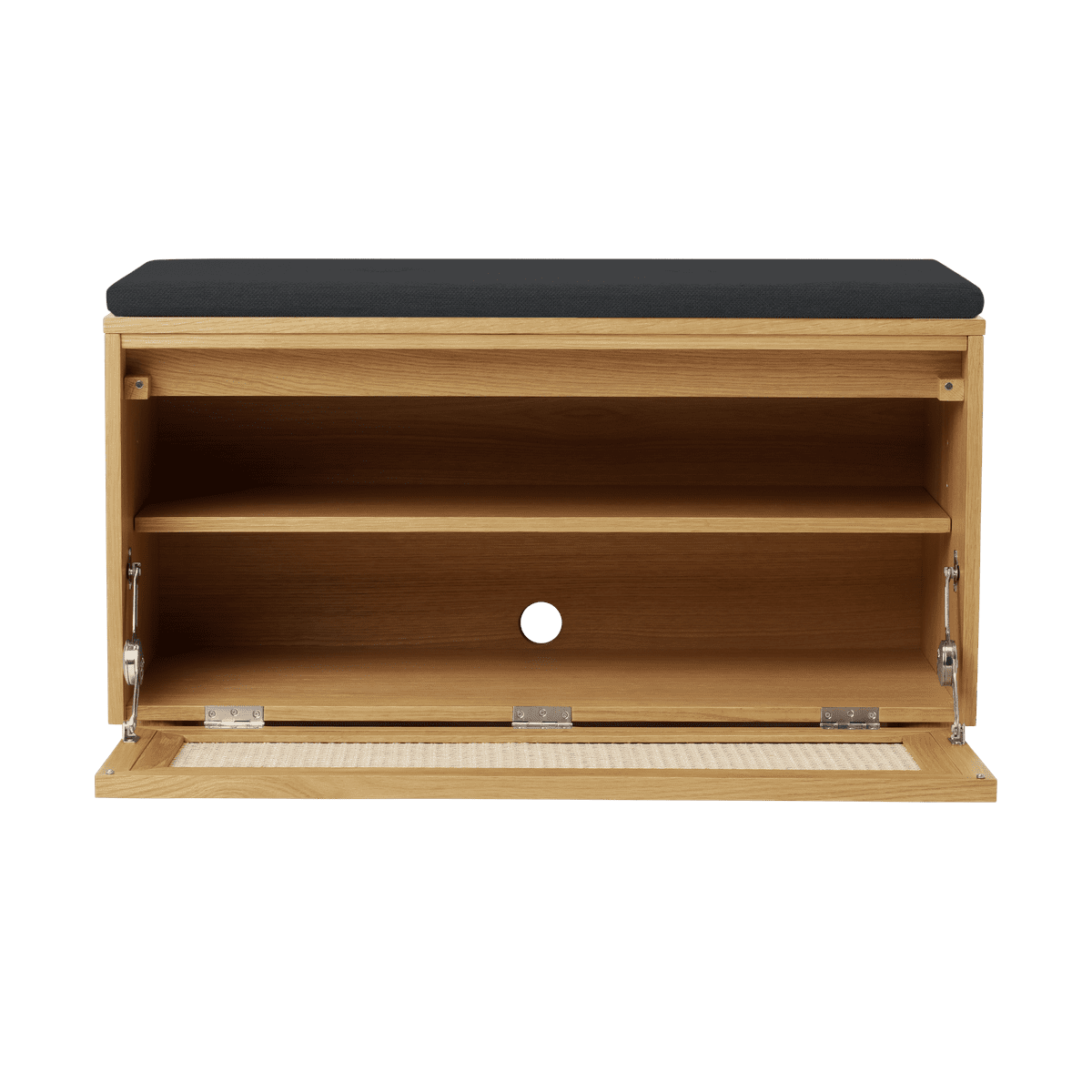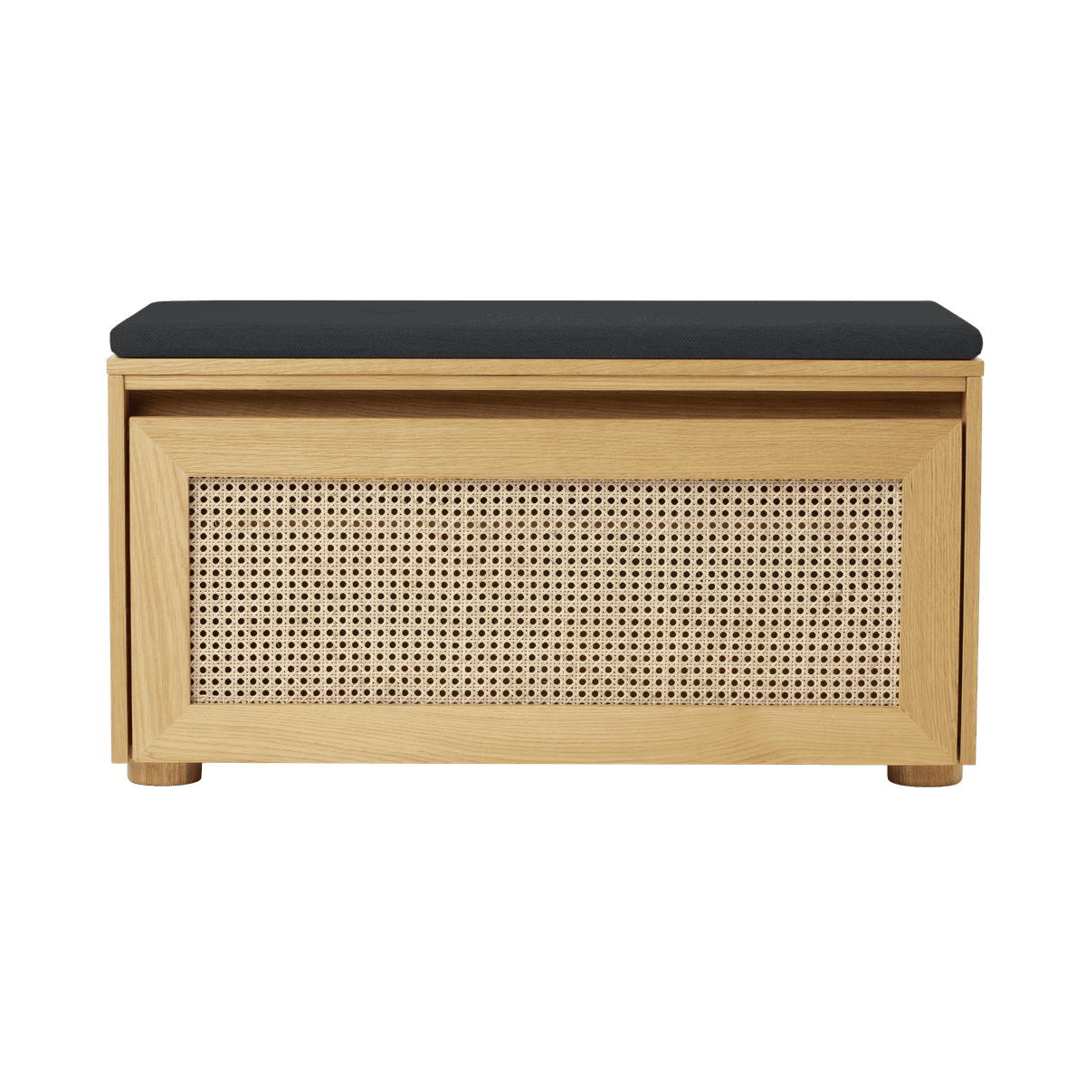 Hideaway opbergbank eik – webbing klapdeur - shadow kussen
