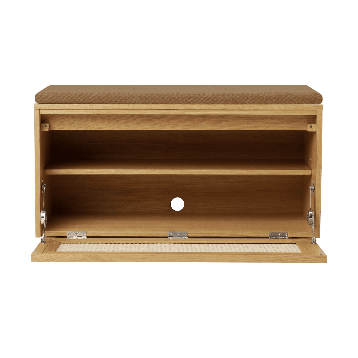 Hideaway opbergbank eik – webbing klapdeur - sugar brown kussen