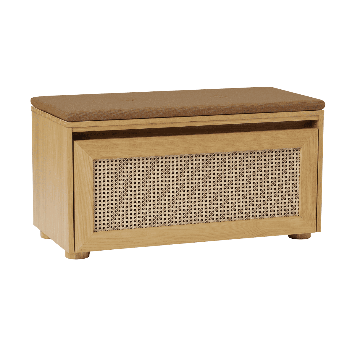 De Hideaway opbergbank van Umage is ontworpen om op een natuurlijke manier orde en rust te brengen in je interieur. Vervaardigd uit eikfineer met een verfijnde houtstructuur, door de webben structuur in de klapdeur straalt dit meubel Scandinavische klasse uit — subtiel en functioneel tegelijk.