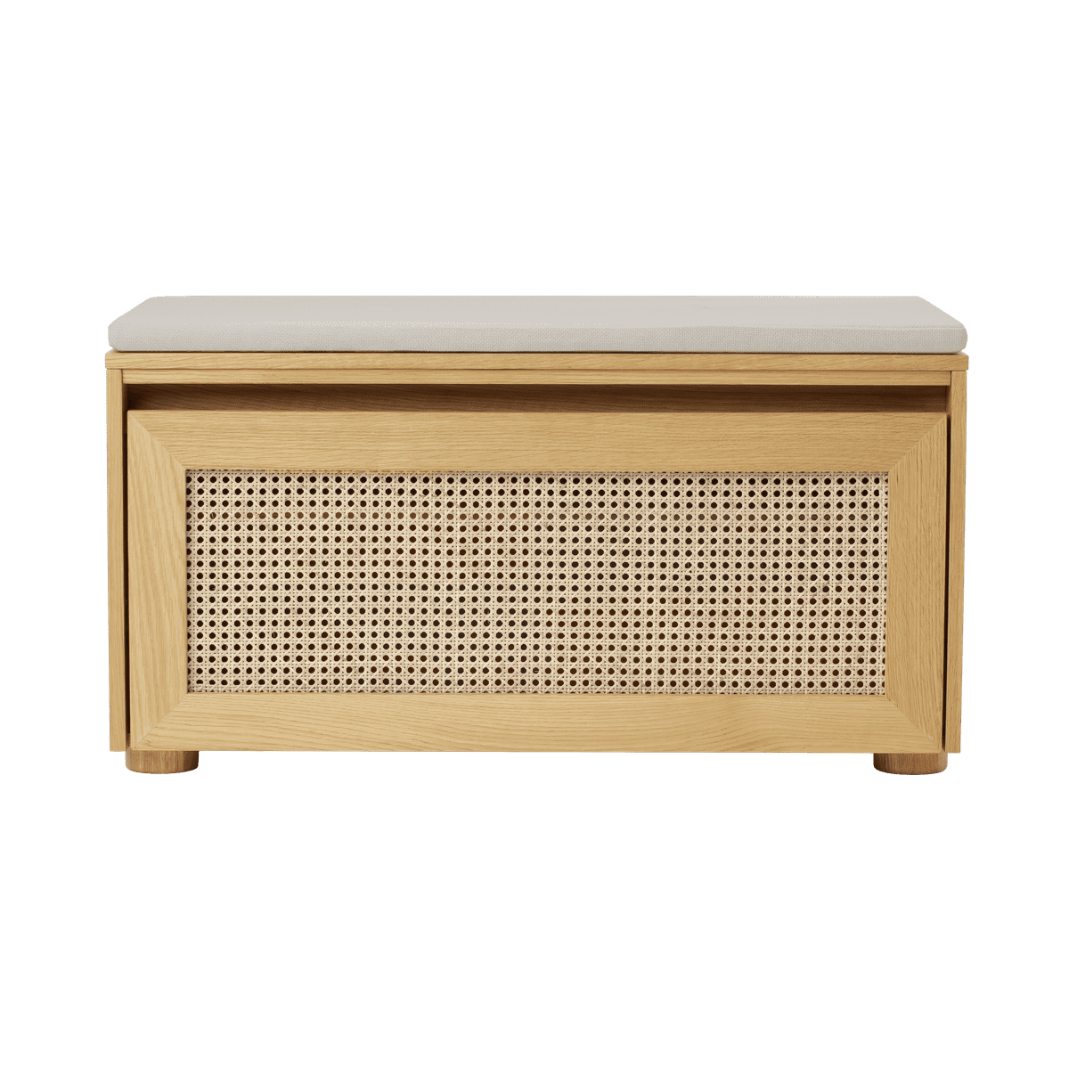 De Umage Hideaway opbergbank in eik met webbing en het White Sand Cushion verenigt tijdloos design, slimme opbergruimte en zacht zitcomfort in één verfijnde blikvanger. Lees meer