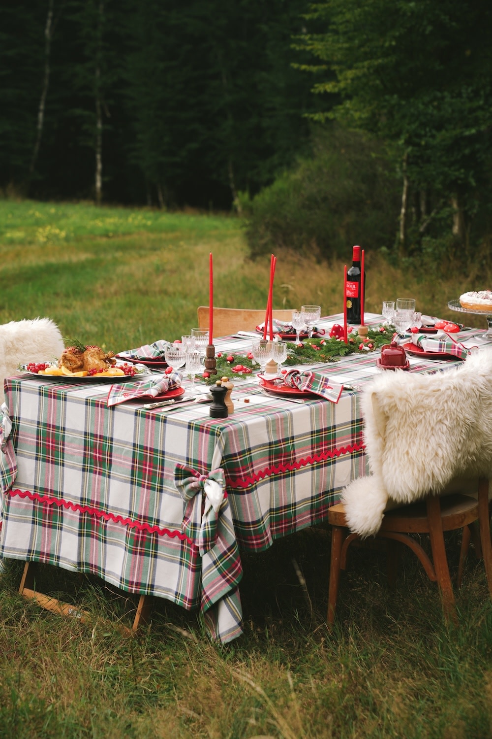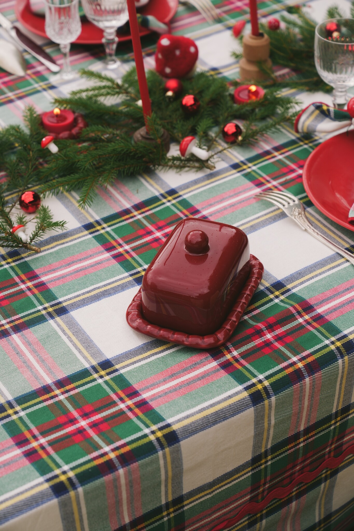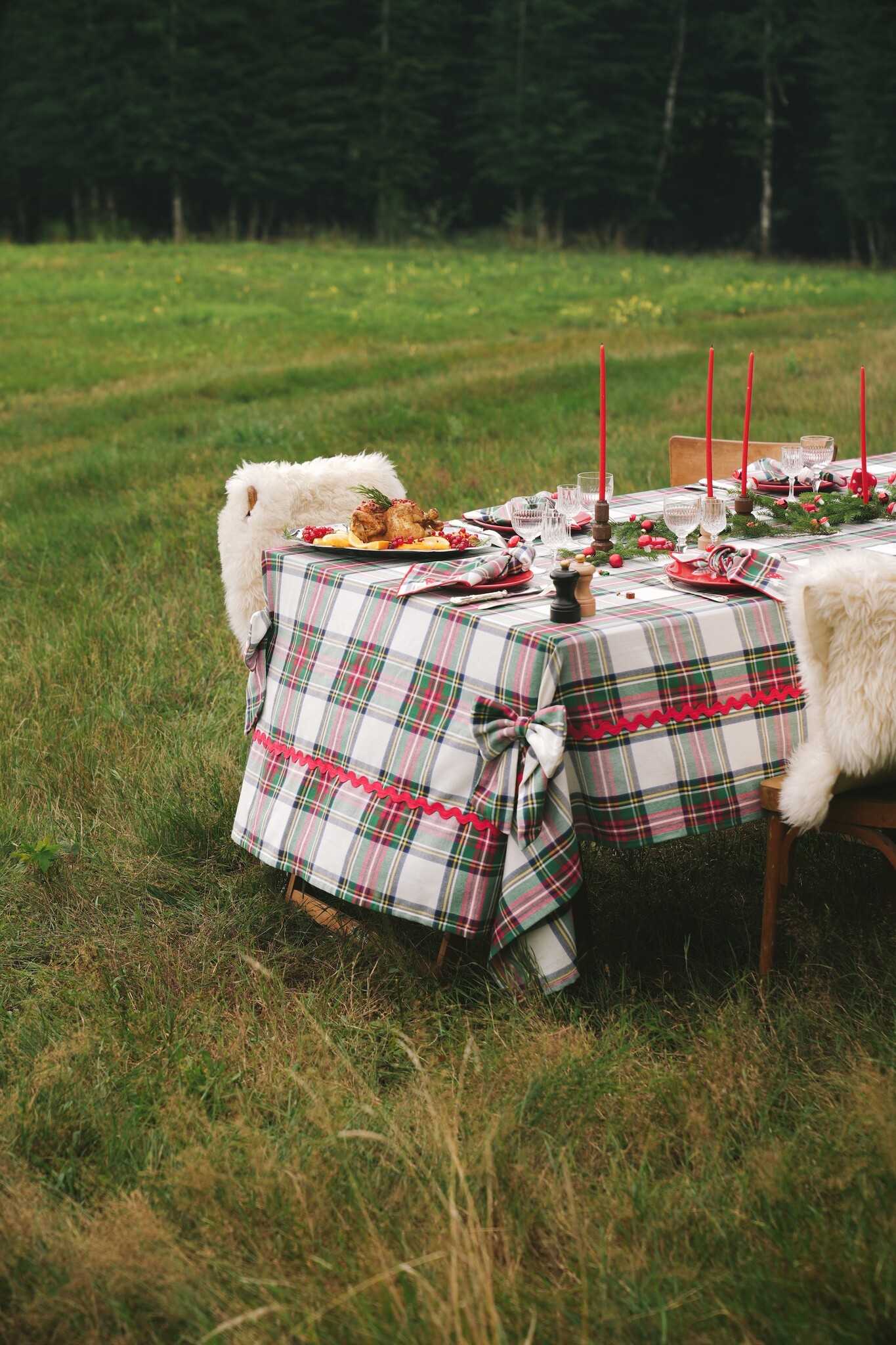 Het Maison Dînette Highland Snow tafelkleed (250 × 170 cm) brengt een klassieke tartanruit en een feestelijke winterlook samen in 100% geweven katoen. Lees meer