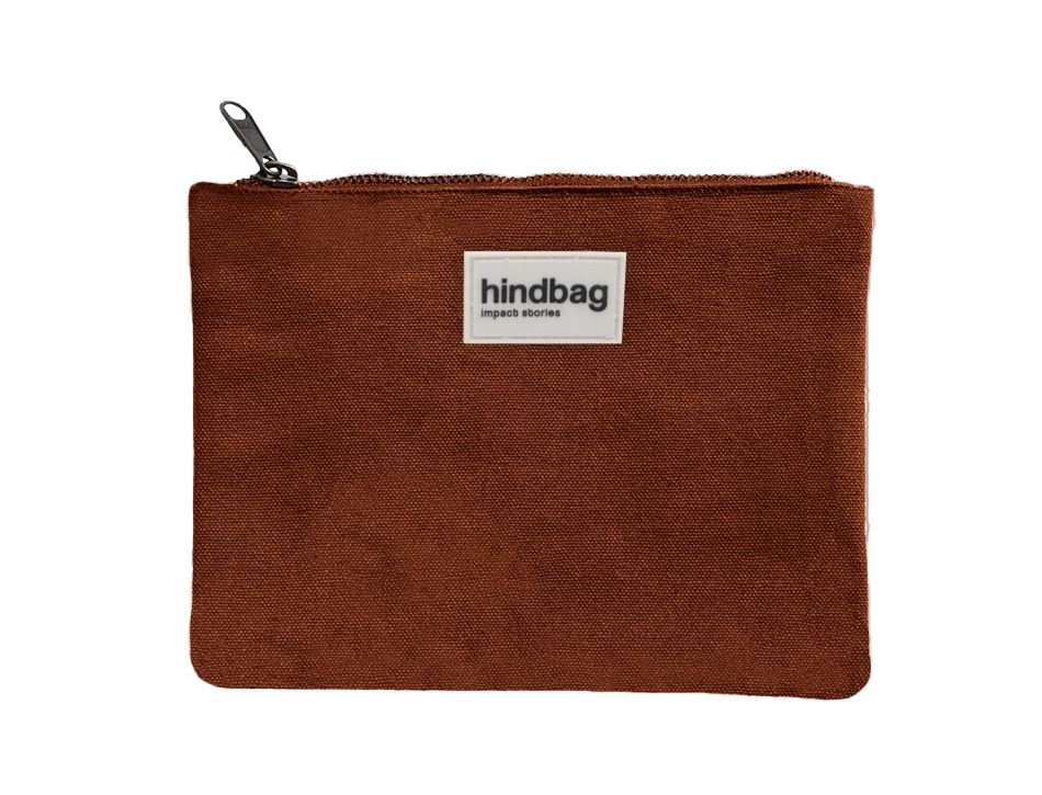 De diepbruine Chocolat-tint geeft Lou een warme, tijdloze uitstraling, terwijl de handgemaakte voering met blockprintmotief zorgt voor een unieke, elegante toets. Gemaakt van dik biologisch katoen, voelt deze pouch stevig aan en blijft ze jarenlang mooi.