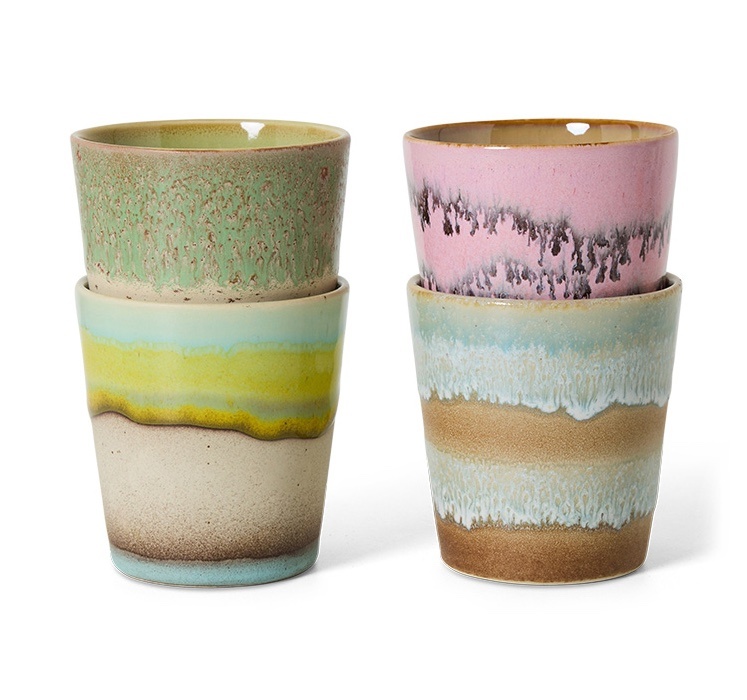 70s koffiekopjes pop art - set van 4