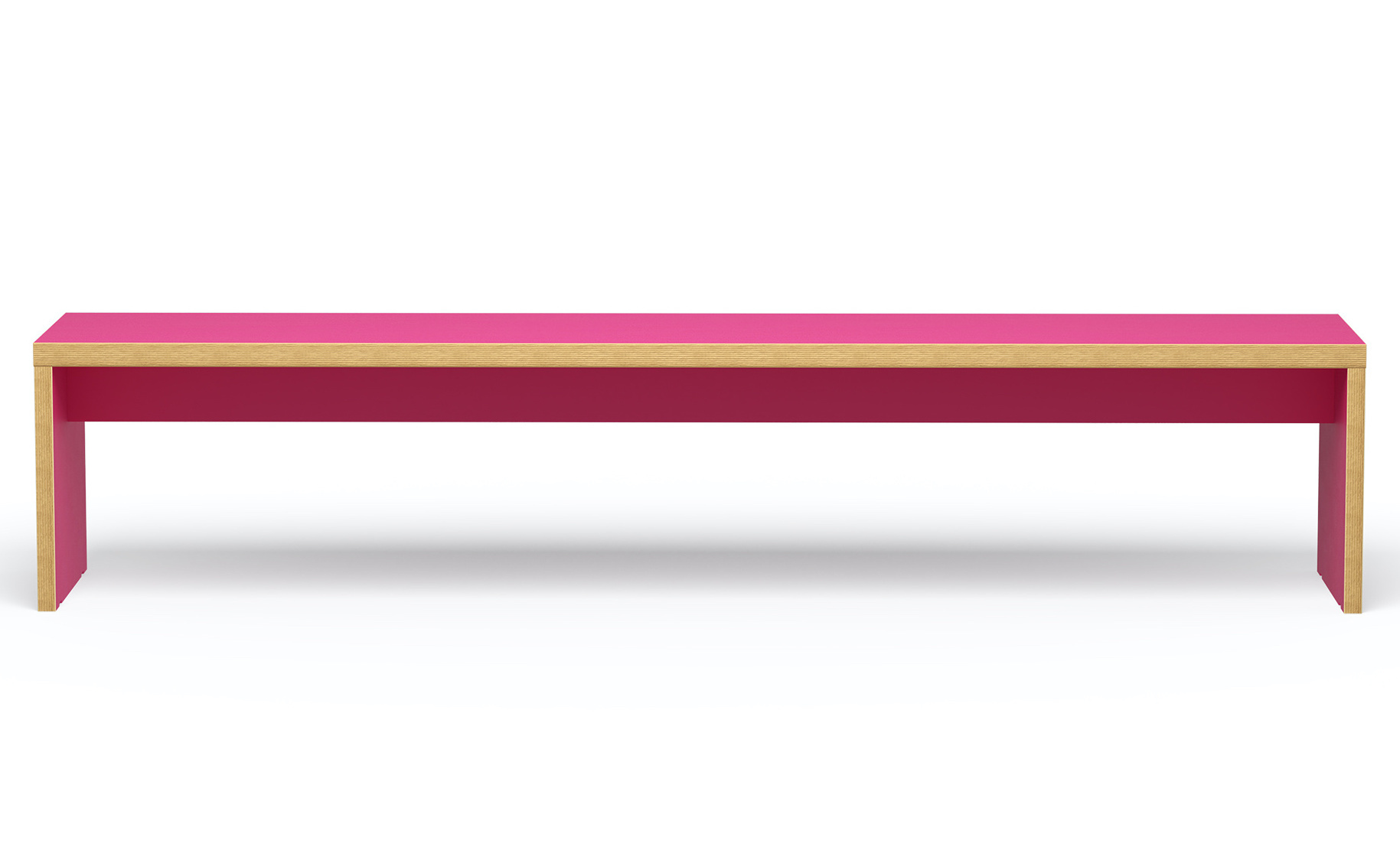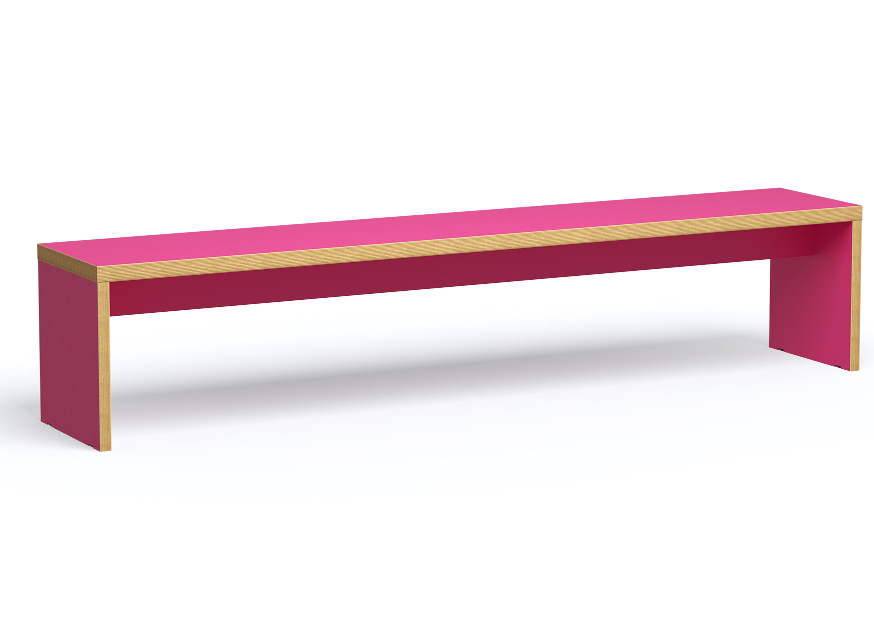 | Materiaal | Deze bank is opgebouwd uit een combinatie van Eurolight, MDF en HPL, met een uitgesproken raspberry kleur afwerking. |