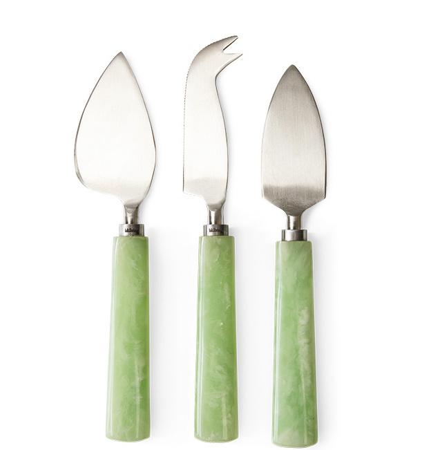 Maak je kaasplank compleet met de kaasmessenset sage van HKLiving. Deze set van drie messen heeft unieke handvatten in een zachte groentint, gemaakt van polyresin, die mooi contrasteren met de strakke roestvrijstalen bladen. Elk mes heeft zijn eigen vorm, zodat je eenvoudig zachte, harde of kruimelige kazen kunt snijden en serveren. Stijlvol én praktisch, perfect voor borrels en diners.