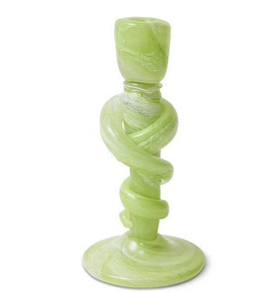 Maak een opvallend maar elegant statement met de HKLiving Knotted kaarshouder large. Deze bijzondere kaarshouder is vervaardigd uit frisgroen glas, subtiel doorkruist met een zachte swirl van crème. De gedraaide vorm zorgt voor beweging vanuit elke hoek, waardoor het een echte blikvanger is. Met of zonder kaars verspreidt deze kaarshouder warmte, sfeer en artistieke charme in jouw interieur.