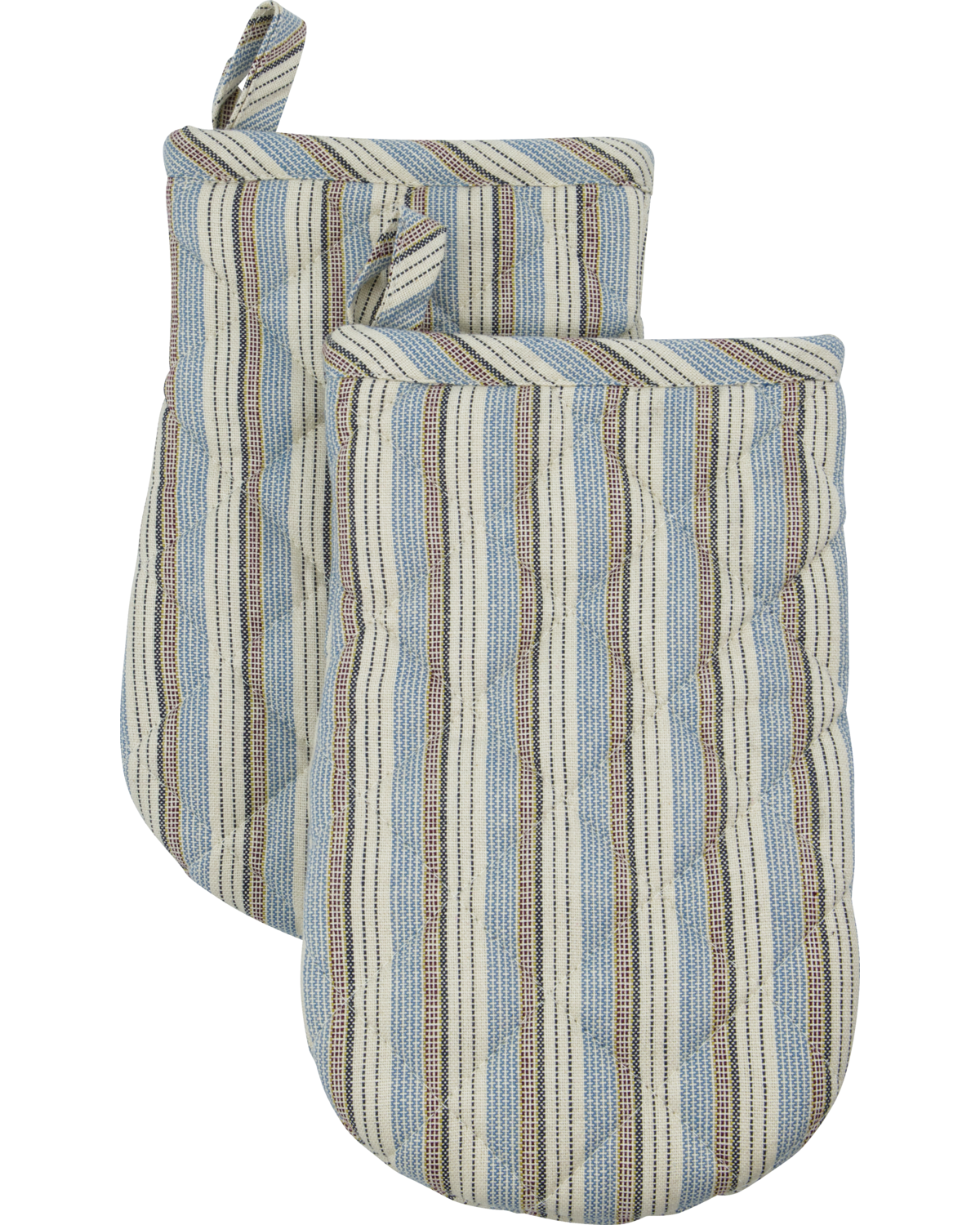 De House Doctor Chef ovenwanten in blauw/zand brengen stijl en veiligheid in je keuken. Set van 2, gemaakt van zacht katoen met hittebescherming. Lees meer