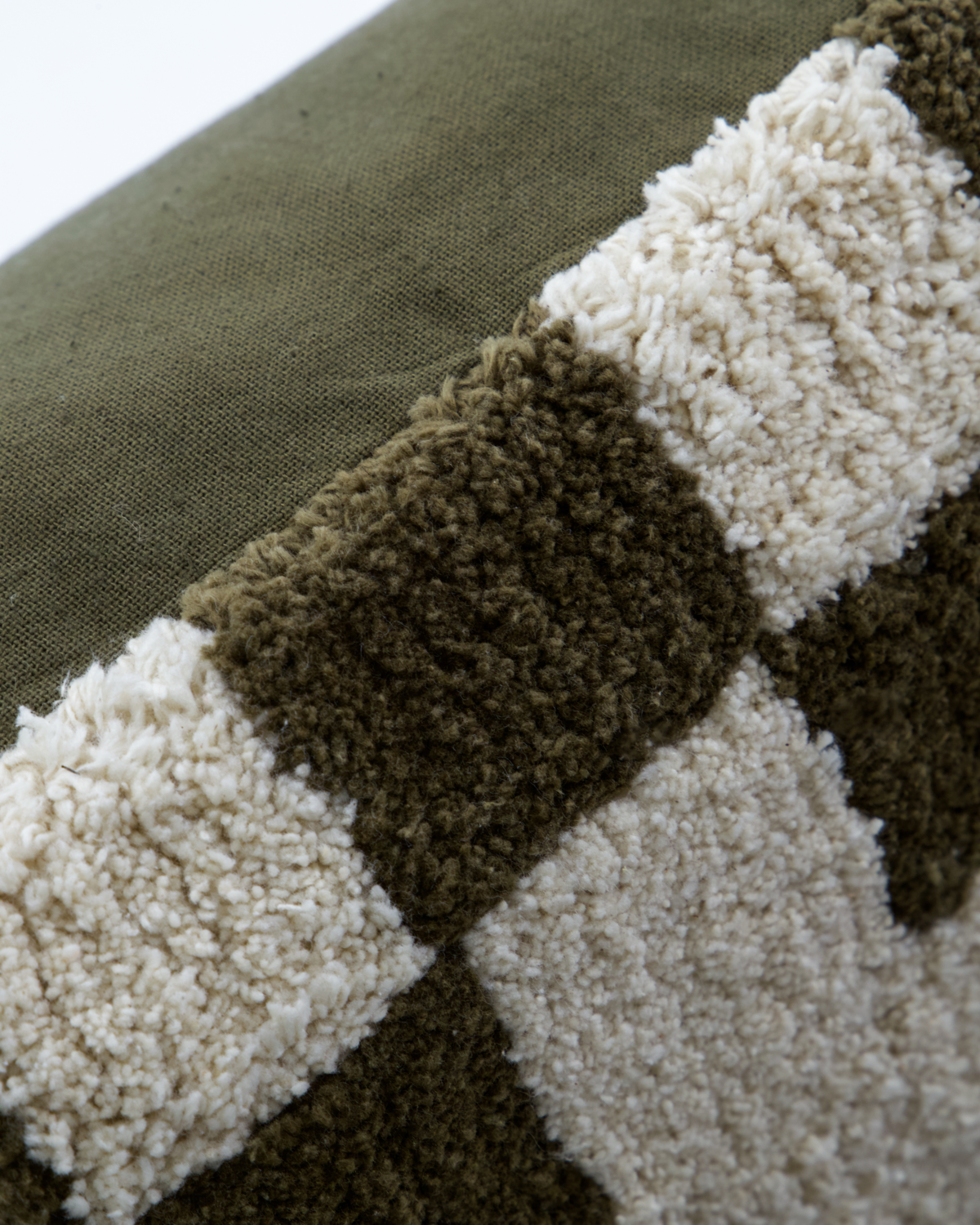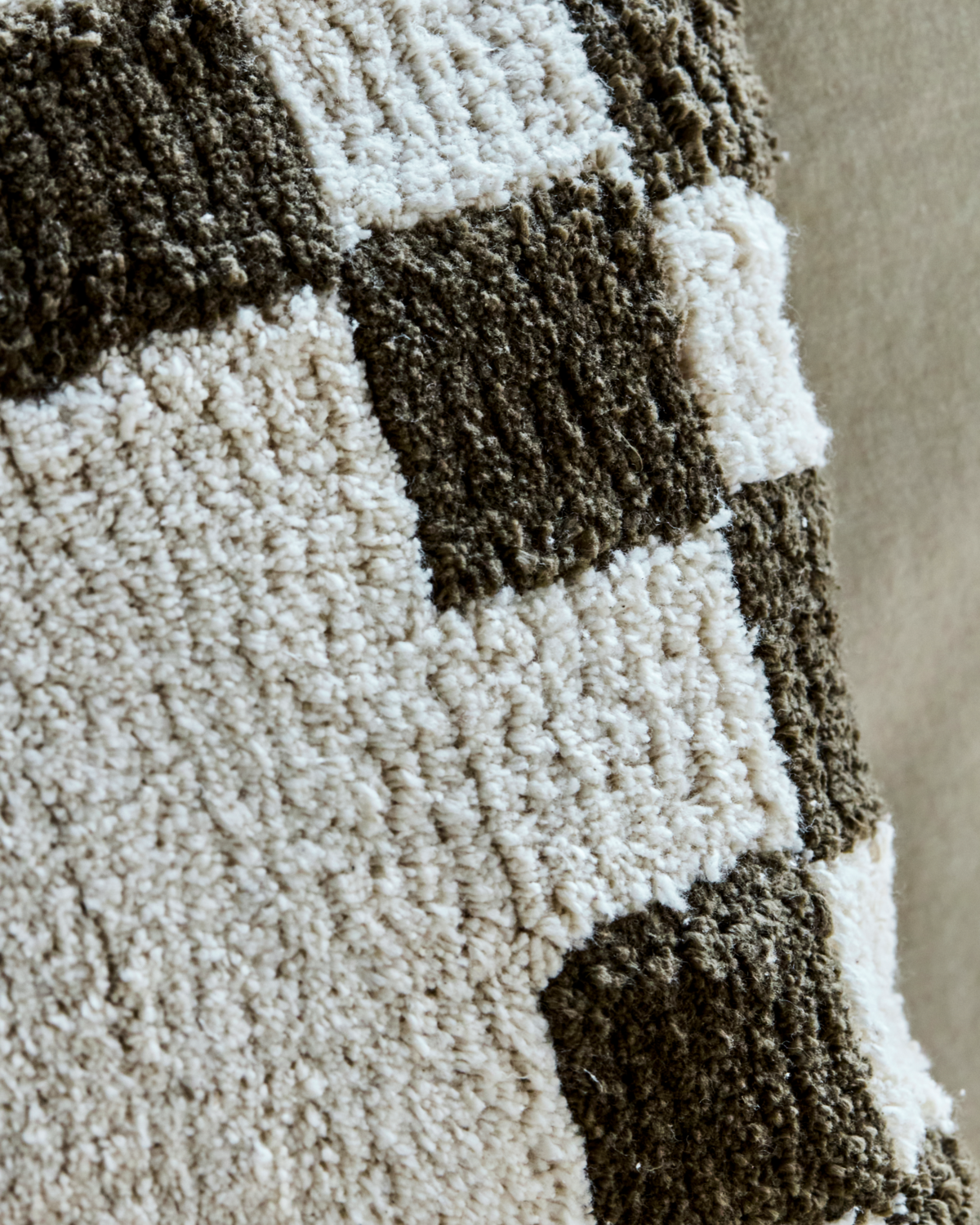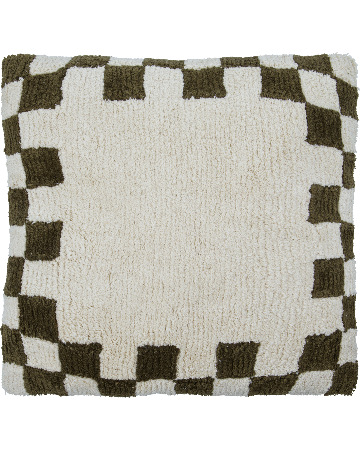 Het House Doctor Chess kussen combineert een fris schaakbordpatroon in groen en gebroken wit met een zachte, comfortabele textuur. Gemaakt van 100% katoen voelt de hoes warm en uitnodigend aan, perfect voor een relaxmoment op de bank of in bed.